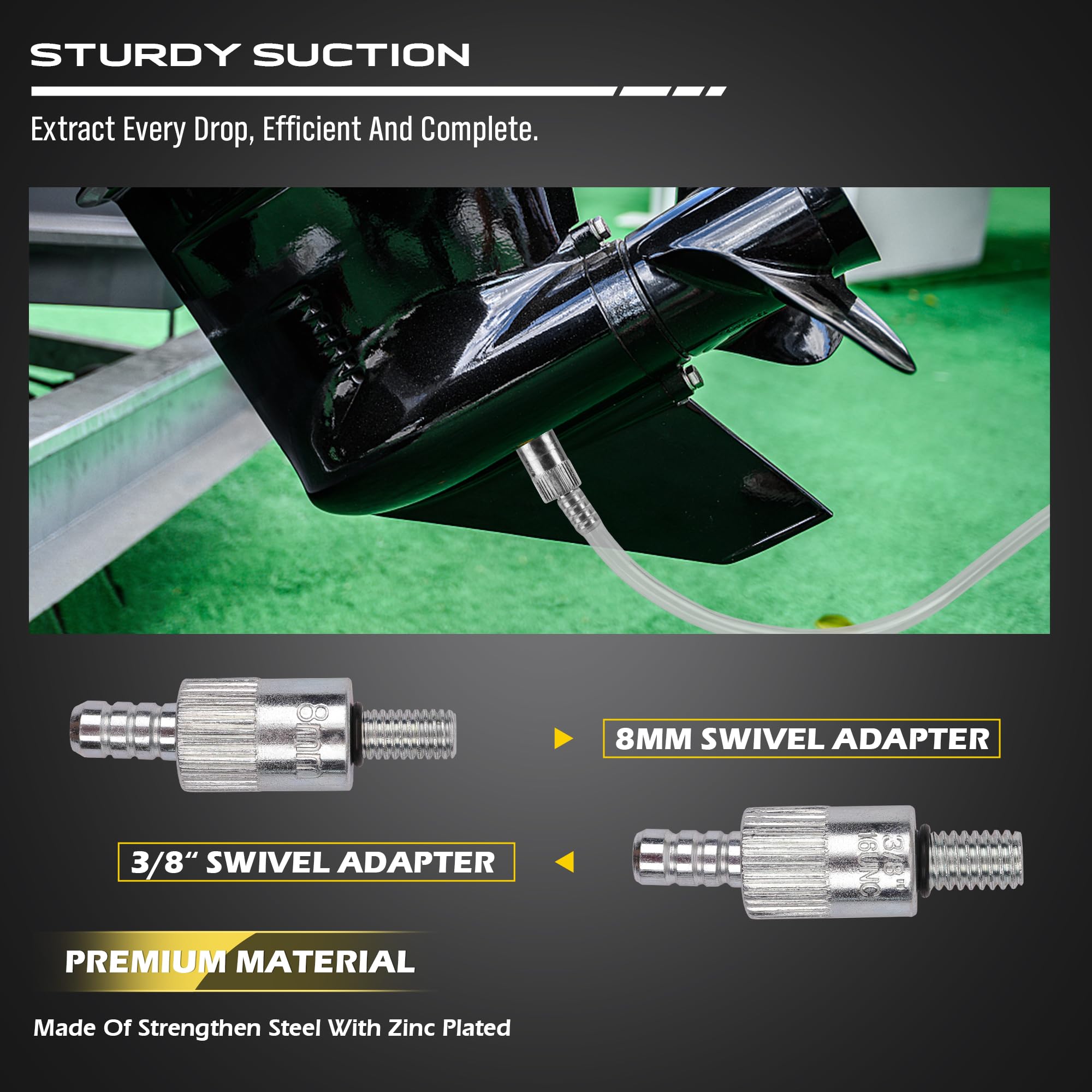VERSATILE ADAPTERS - With the 3/8 in.-16 adapter, this oil pump kit fits OMC, Mercruiser, Evinrude, and more; the 8mm adapter suits Mercury (Japanese models), Yamaha, and others, making it a versatile marine motor extractor tool.