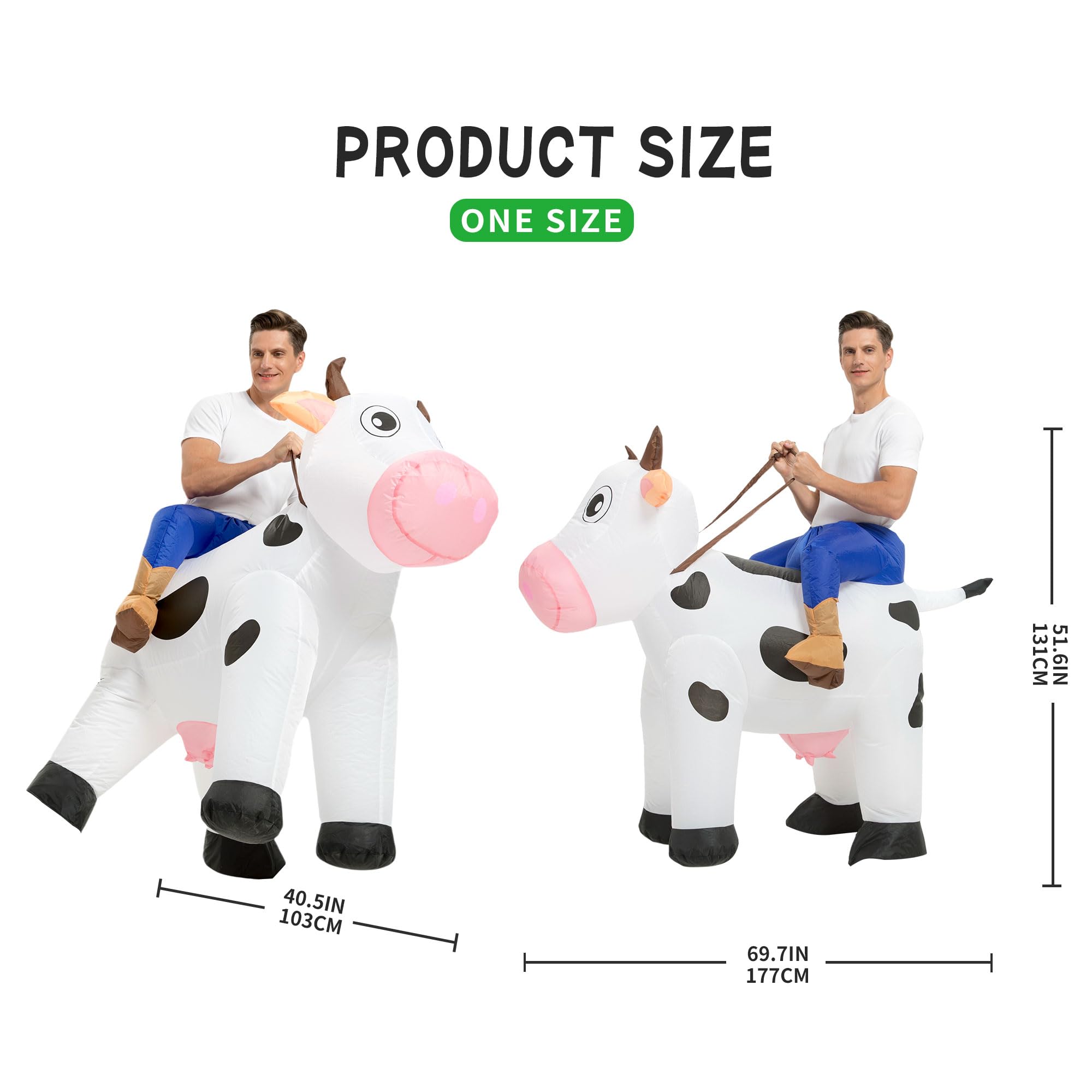 【Product Size】Deluxe Version of Inflatable Cow Costume. Adult Size. One Size Fits for 5.3-6.2ft/63.6-74.4inch.