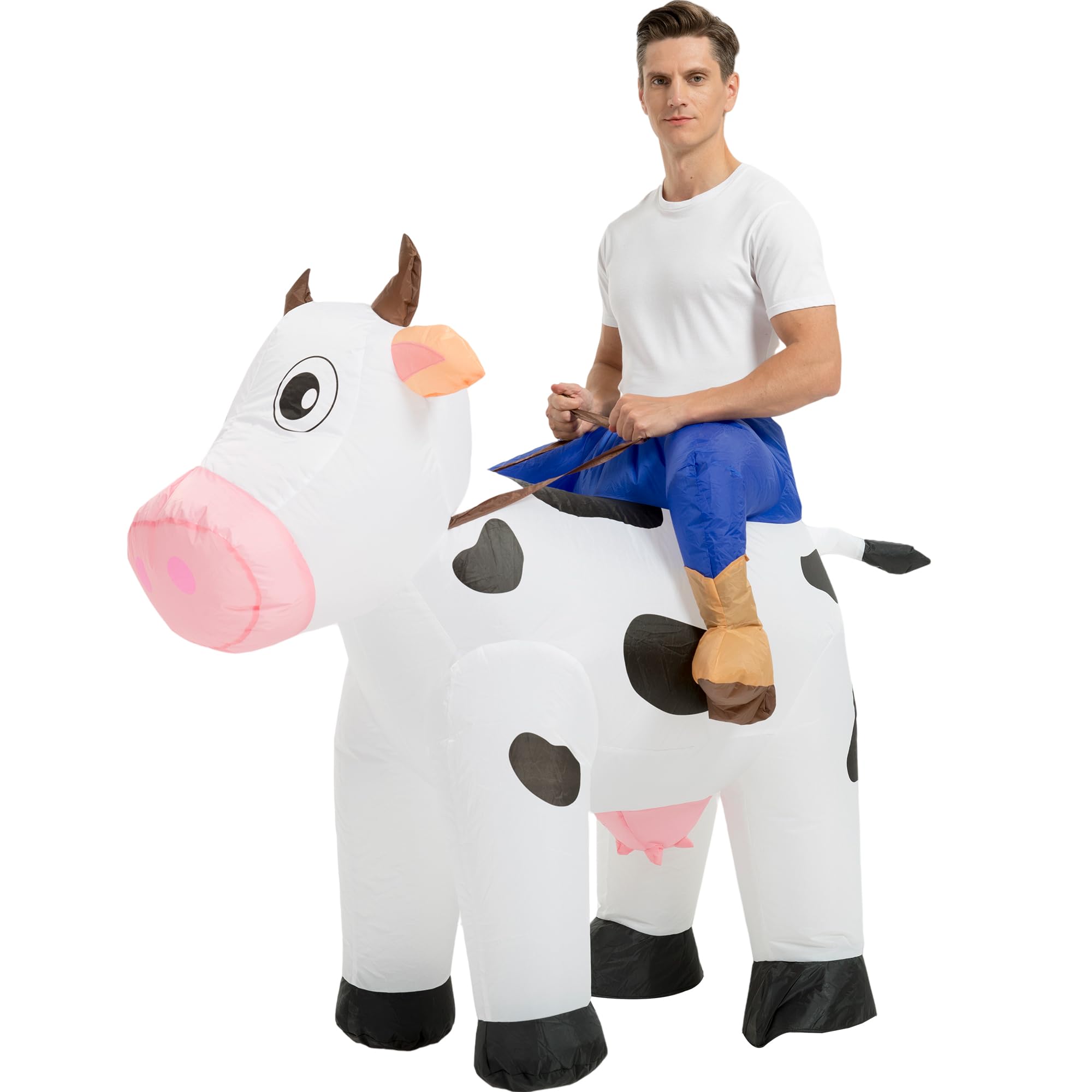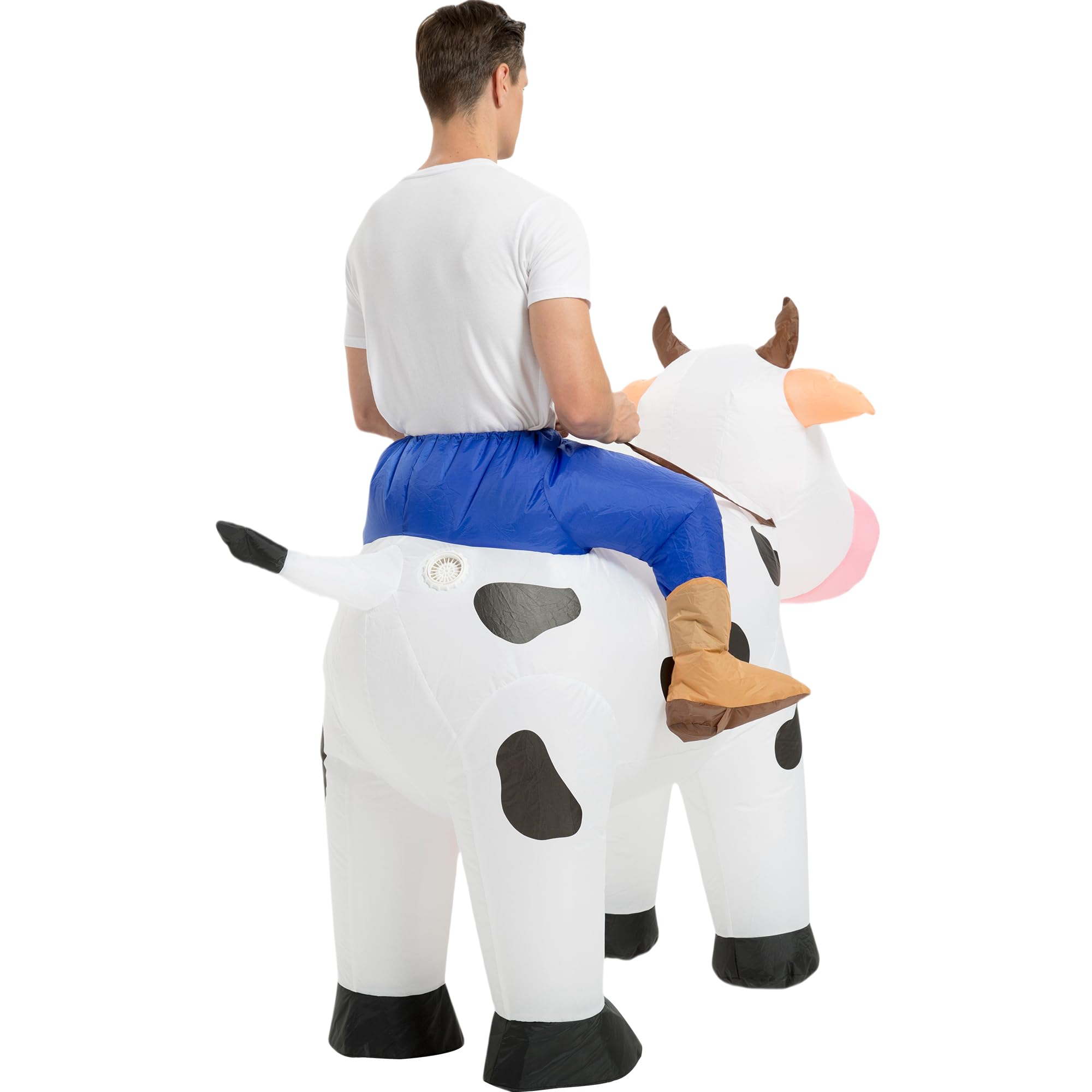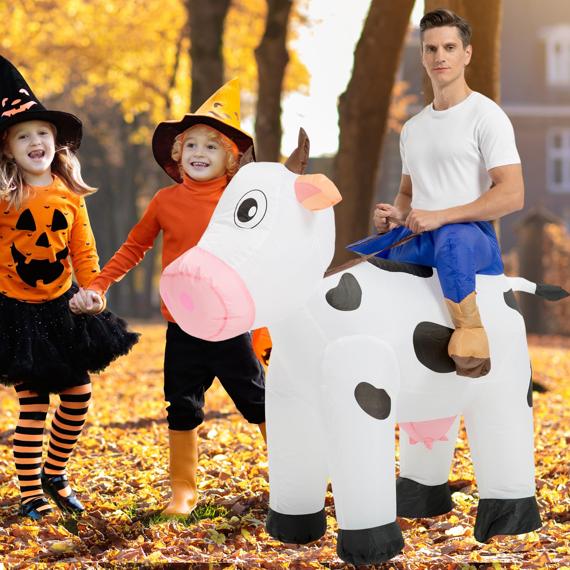 【Excellent Craftsmanship】 The Cow costumes for Halloween are made of high strength waterproof polyester which is against rips and tears, the excellent stitching improves the quality of the inflatable costumes. Moreover, our costumes are providing with a powerful-duty blower to continuous airflow inflate the costumes.