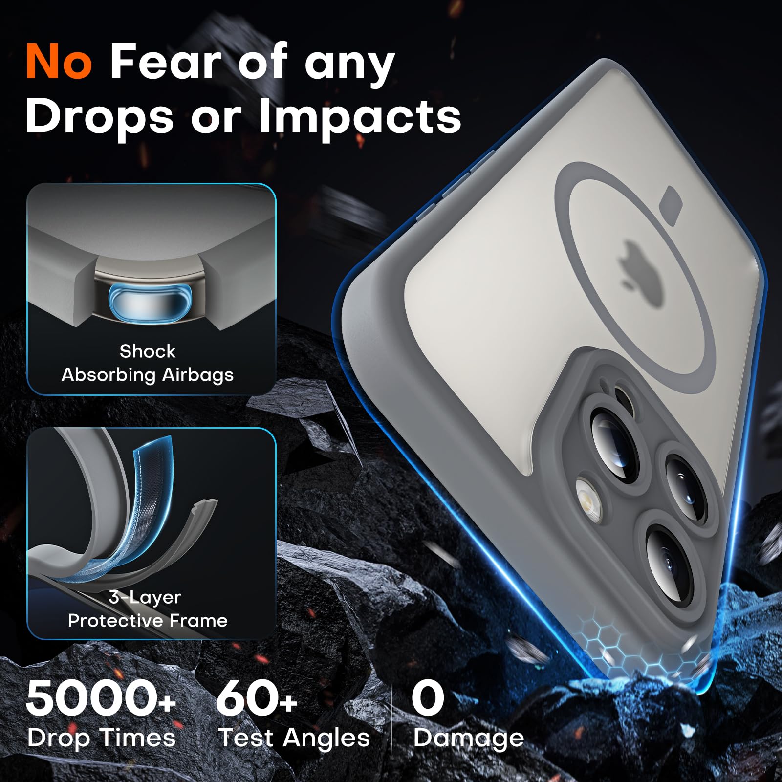 Slim and Comfortable Design: This 16 pro max matte phone case features a premium translucent surface and upgraded nano-oil-resistant coating, providing a silky, non-stick feel. Ultra-thin 0.05" profile, retains the sleek style of your phone