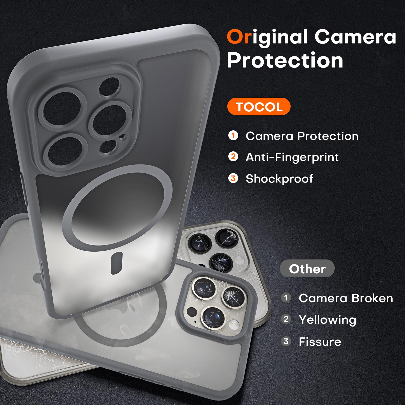 Designed for Camera Safety: TOCOL case for iPhone 16 pro max upgraded camera surround protection, integrated with the case. The camera frame is 0.8mm higher than the camera lens, which can protect your most precious camera lens from scratches and collisions