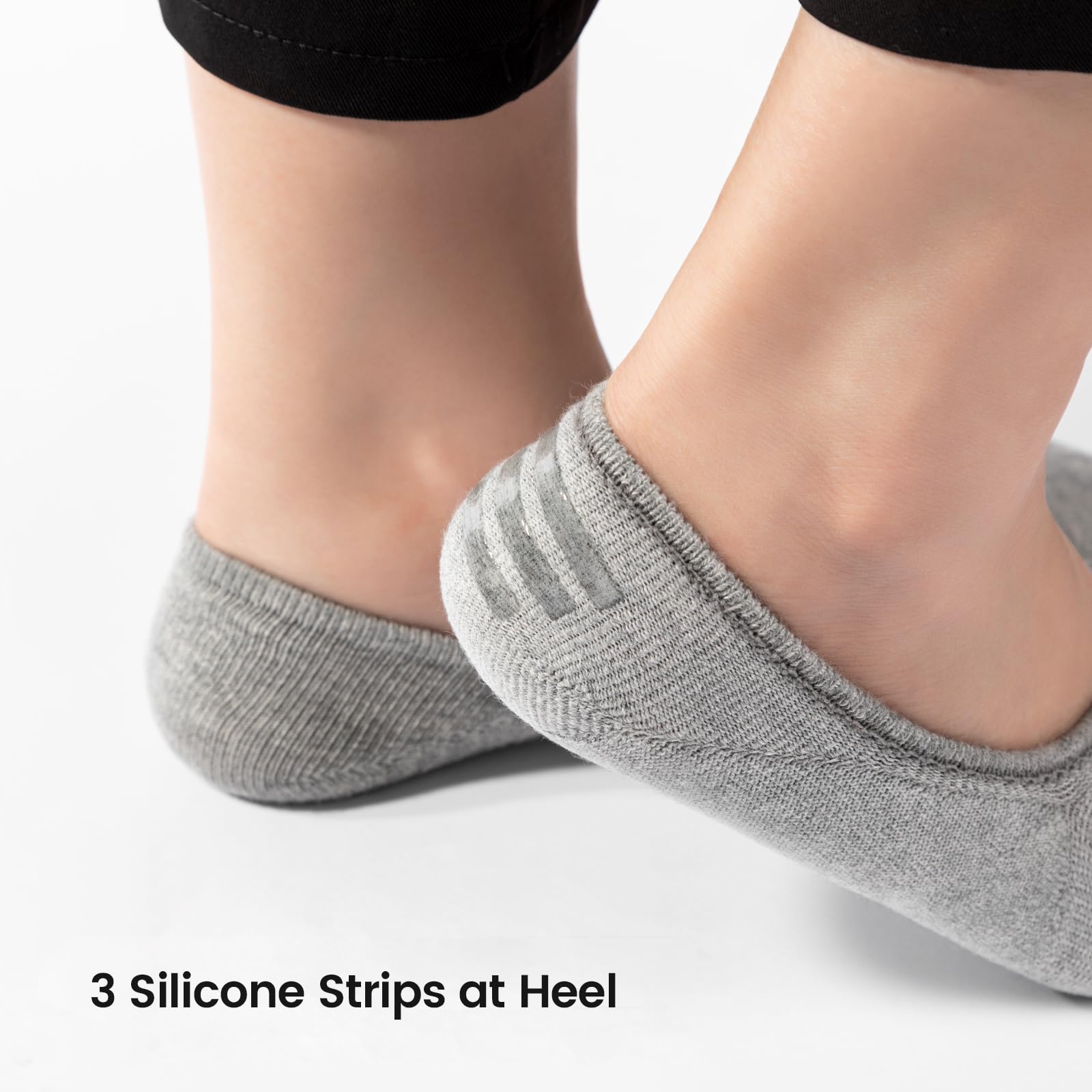 Non-Slip Heel Grip Design: Three Silicone Strips designed at the heel for consistent positioning during routine wear.
