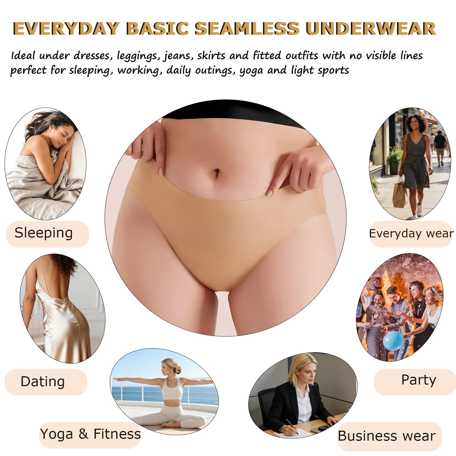 Seamless Underwear: Low waist, just like the second layer of skin to meet the picky requirements of the butt for comfort. you won't get foreign body sensation and it can reduce the friction during exercise, you can easily control all kinds of material fabric dresses or semi-nude dresses, with sweatpants or tight-fitting professional wear can also reveal the traces, highlighting the human body beautiful lines.