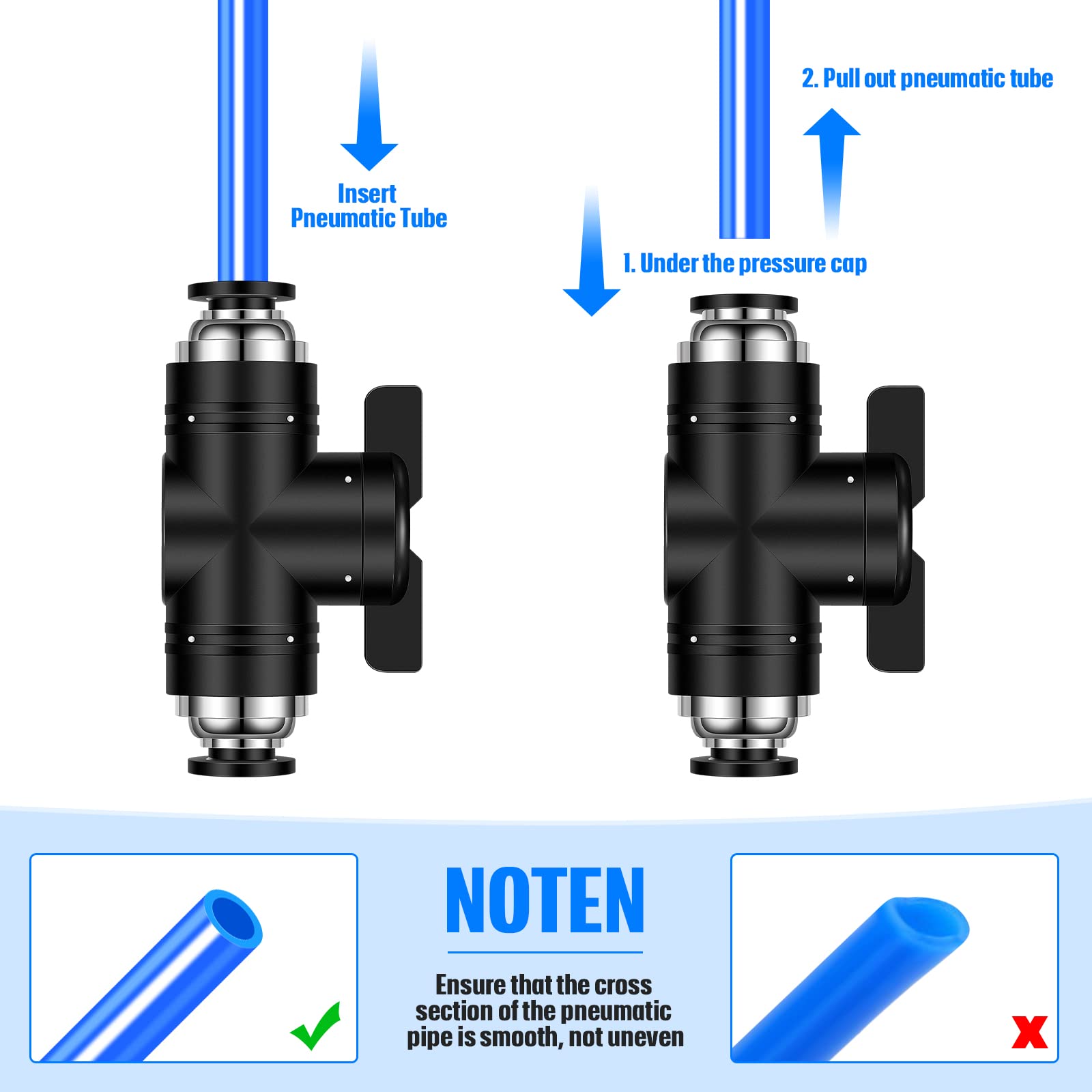 Wide Applications: these versatile quick connect air fittings work with pneumatic tools, air ducts, and various components. Compatible with PU/PA/PE/PVC tubing, these pneumatic ball valves are ideal for multiple industrial applications