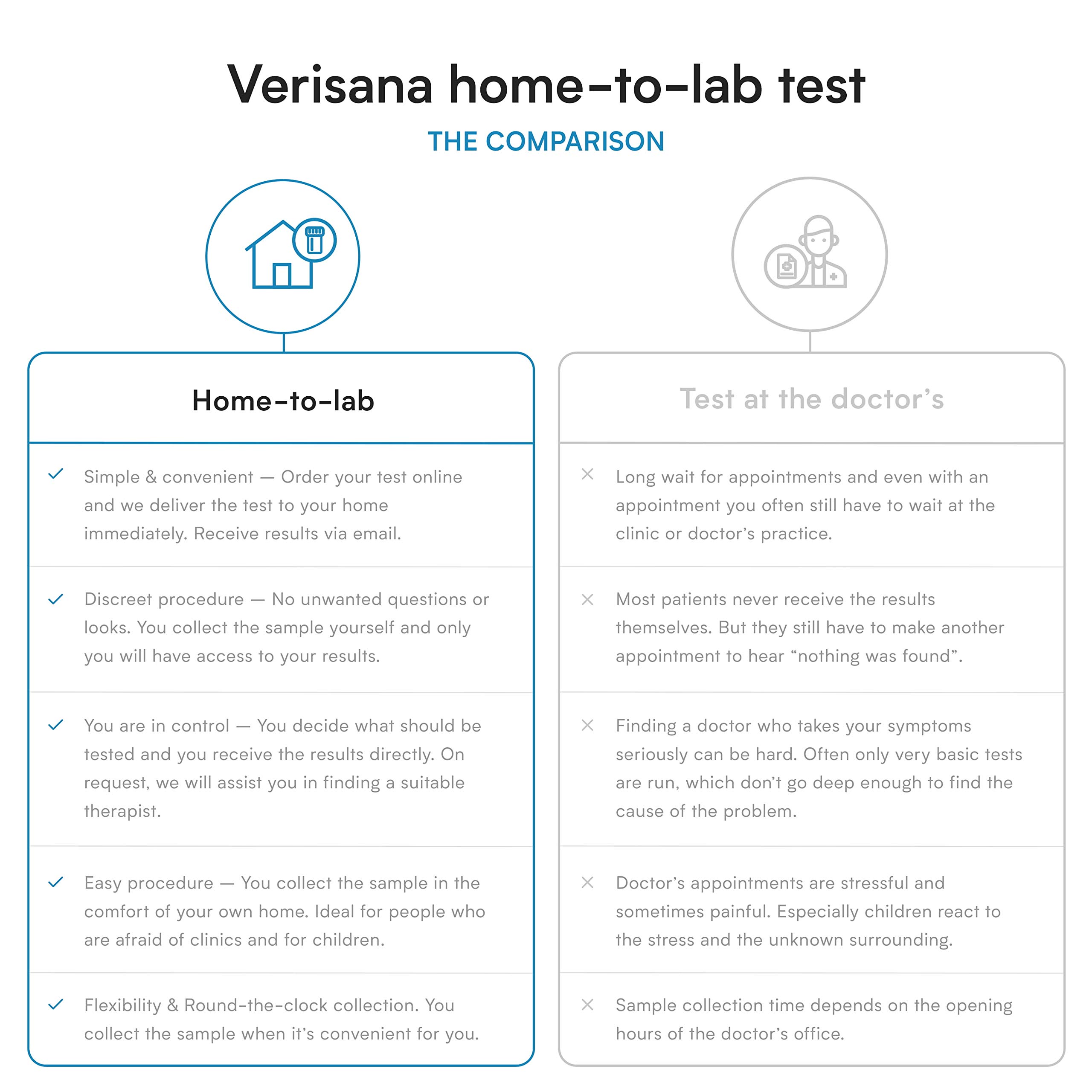 ✅ COMPLETE: Everything included - sample instruction, test equipment and a bag for return shipment. Results can be easily downloaded in your Verisana account.