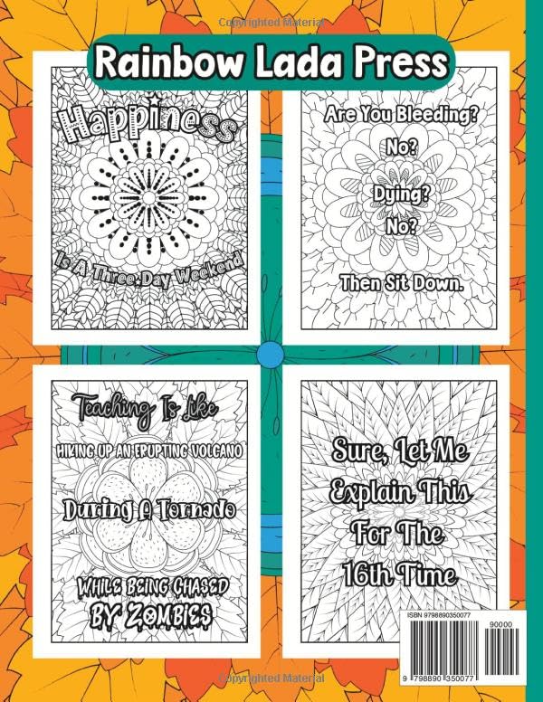 Things I Want To Say At Work But Can't Coloring Book: Teacher's Edition from J.J. Hurley and Rainbow Lada Press Do you need a light-hearted gift for a teacher? Or perhaps you are a teacher who needs a chuckle in between grading papers and creating lesson plans? If so, then this book is for you! What you will love about this book: 30 hilarious designs. This coloring book has 30 funny phrases with mandala backgrounds. No Swear words. Sometimes swearing is inappropriate. English teacher approved! All of our coloring books have been thoroughly proofread. Guaranteed to be typo-free, with no spelling or grammatical errors! Large size. 8.5 by 11 inch pages of high-resolution printing for crisp clear images. Single-sided. Separately printed sheets with black backs to reduce bleed-through to allow you to relax and reduce stress with markers, colored pencils or crayons. Enjoy hours of laughter and stress relief! Some example phrases include: I Love Grading Papers So Much, I Do It In My Sleep I Became A Teacher For The Fame & Money I Have A Teaching Degree, But My Real Qualification Is My Ability To Herd Cats