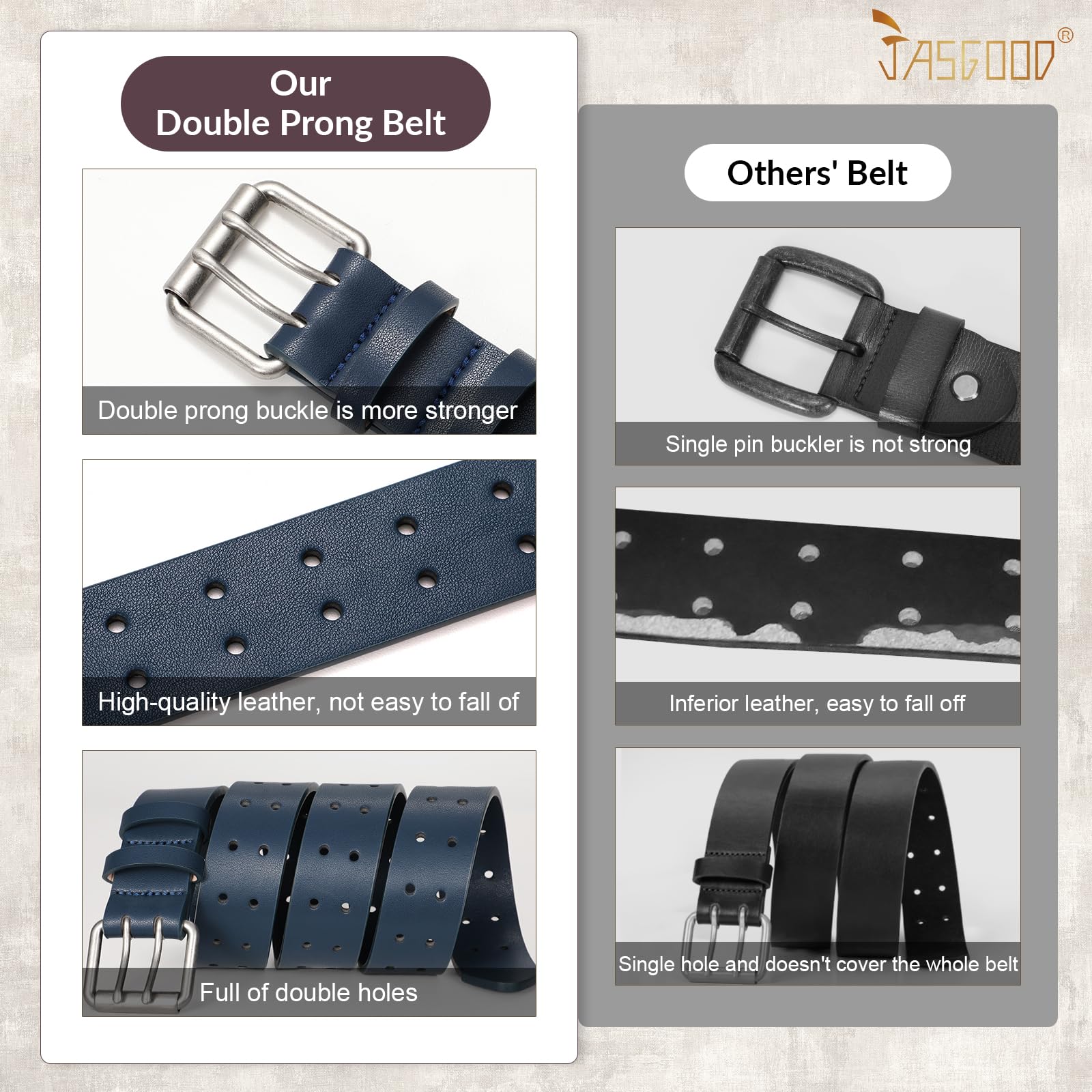 Special Double Prong Design: Do you want to have one belt different from your daily wear? Our double prong buckle and double holes belt can be your ideal one. It can show your distinctive personality and our unique design of this casual belt wonβt let you go unnoticed in crowds.