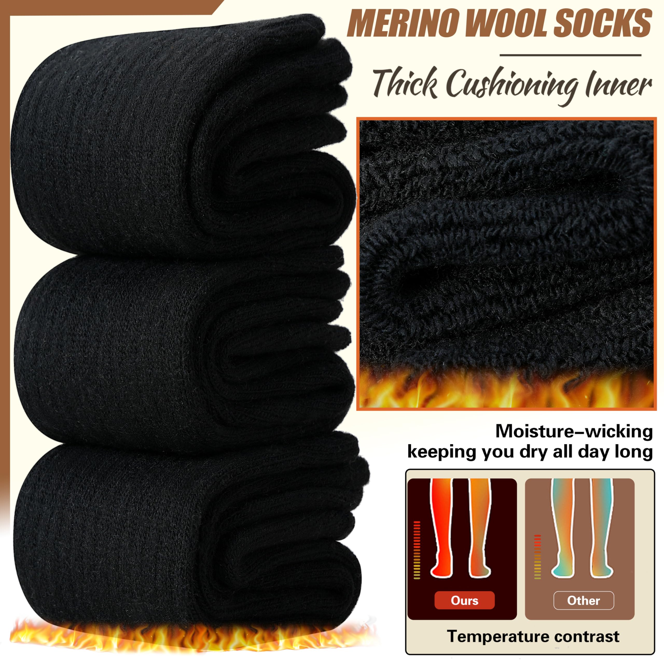 HIGH QUALITY : EBMORE fashion women socks are blend of 55% Wool, 25% Cotton, 15% Polyester, 5% Spandex. Itβs a premium High quality merino wool socks, so the socks is very soft, heavy but breathable, durable, cozy, fuzzy inner lining and will keep your feet comfortable and warm.