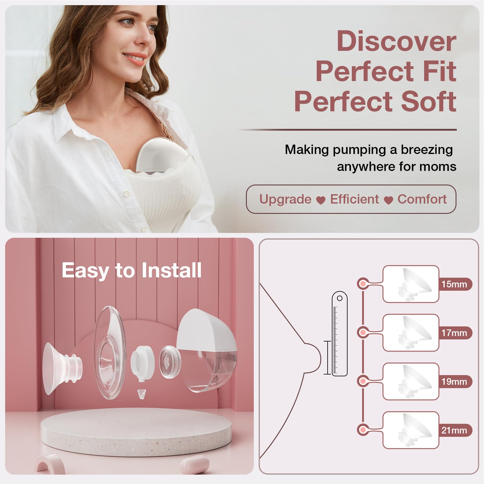 ✅【Upgraded Flange Tunnel 】The newly upgraded 15mm short flange tunnel facilitates faster flow of breast milk into the container and preventing backflow. Some mothers have the experience of nipple swelling while milking, It may be due to frequent use of excessively long flange tunnel. So we have improved the design to reduce friction and discomfort of the nipple in the flange tunnel.