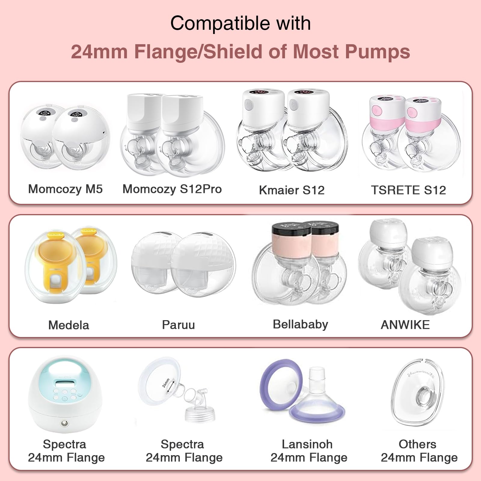 ✅【Highly Compatible with 24mm Pumps】These breast pump flange insert kit is compatible for most leading brands of 24mm breastpumps, such as Momcozy/Spectra/eufy/Medela/TSRETE. We offer 15mm/17mm/19mm/21mm flanged inserts to meet the needs of most mothers at different stages of breastfeeding. Spending less money get suitable size and reduce unnecessary expenses for family.