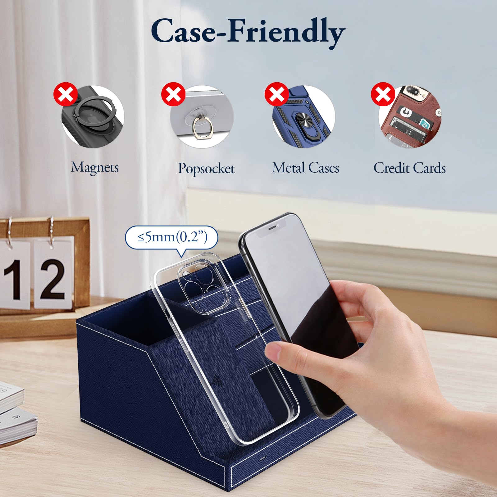 【Case Friendly】: No need to take off the phone case when charging (phone case within 5mm). Please note that metal or credit cards will interfere with charging