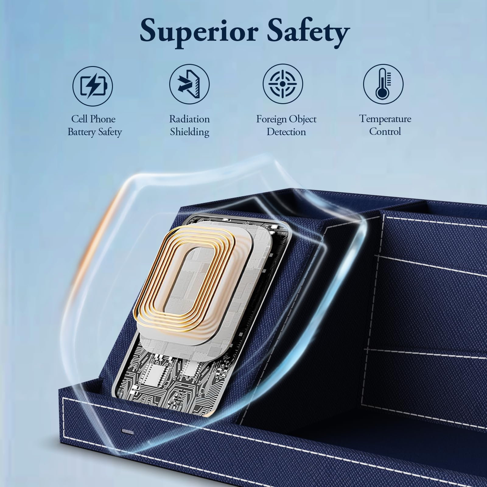 【Premium PU Leather & Velvet Lining】: Wireless Charging with pen holder for desk is made of PU leather and soft velvet Lining, solid and stylish appearance, and feel comfortable. Wear-resistant, easy to clean, long service life