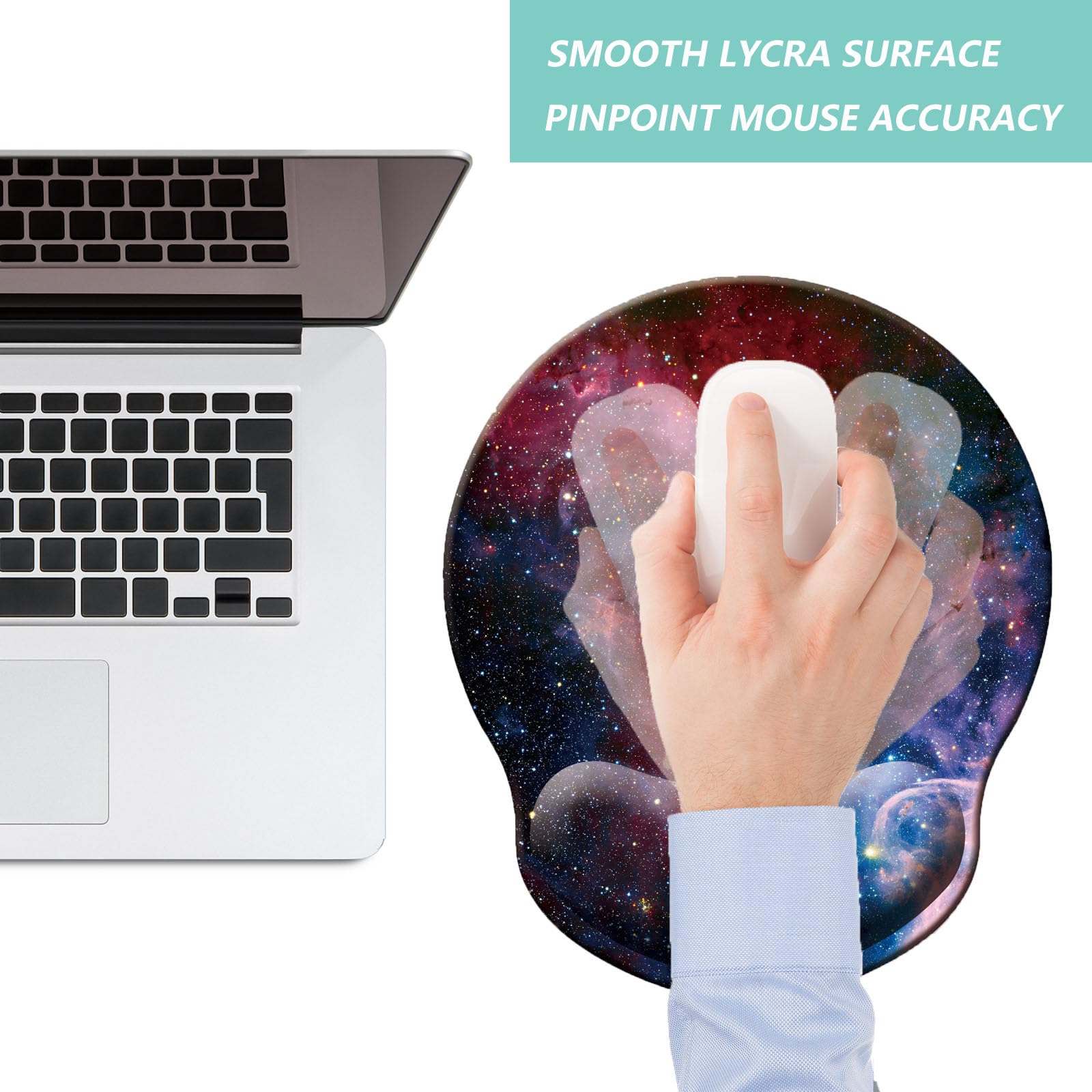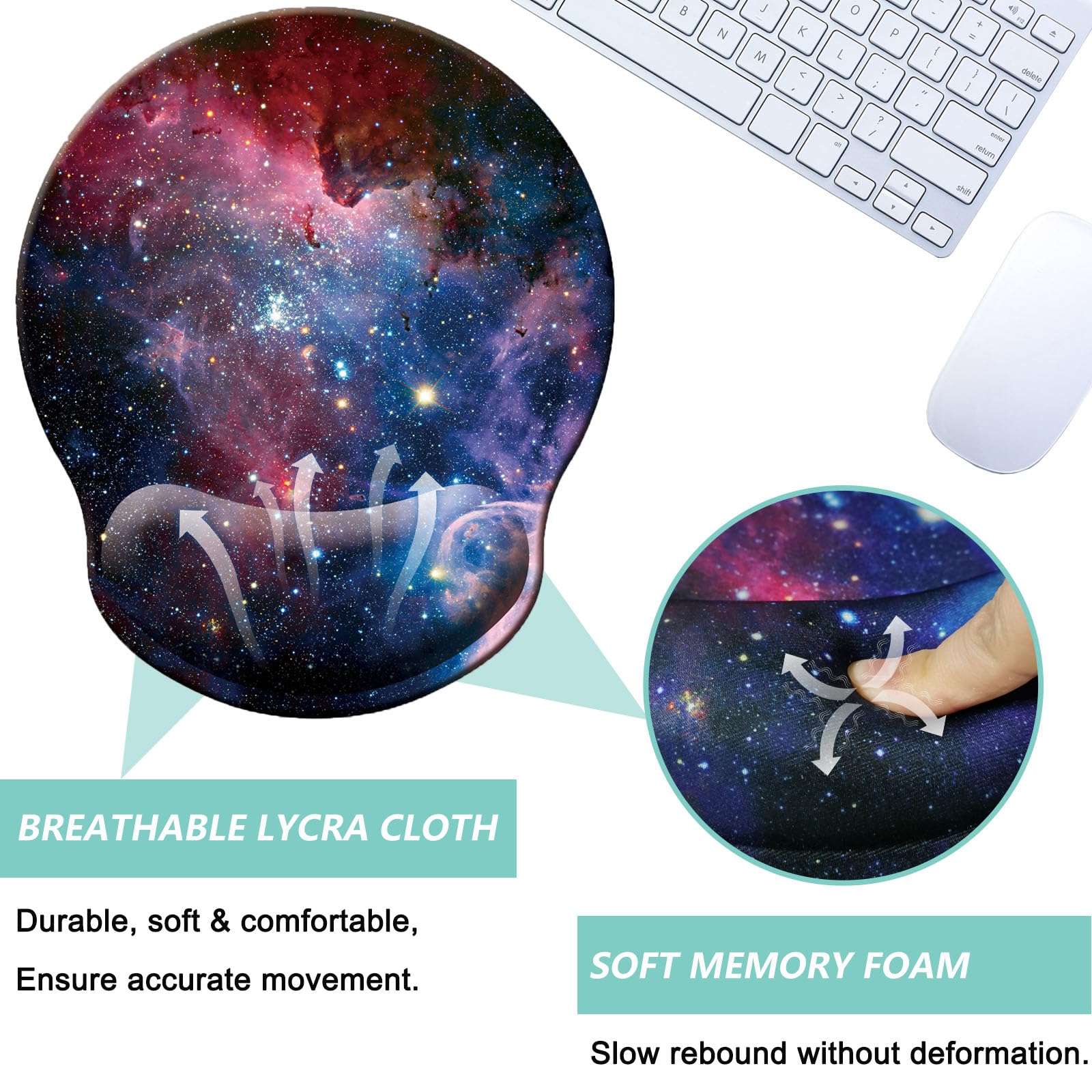 COMFORTABLE - Designed with curved shape wrist rest, filled in memory foam. The soft slow rebound memory foam cushions fit your hands in a natural posture. The smooth surface is made of breathable lycra cloth, ensure accurate precise movement, suitable for all types of mouse, vertical, corded, wireless, mechanical, optical etc.