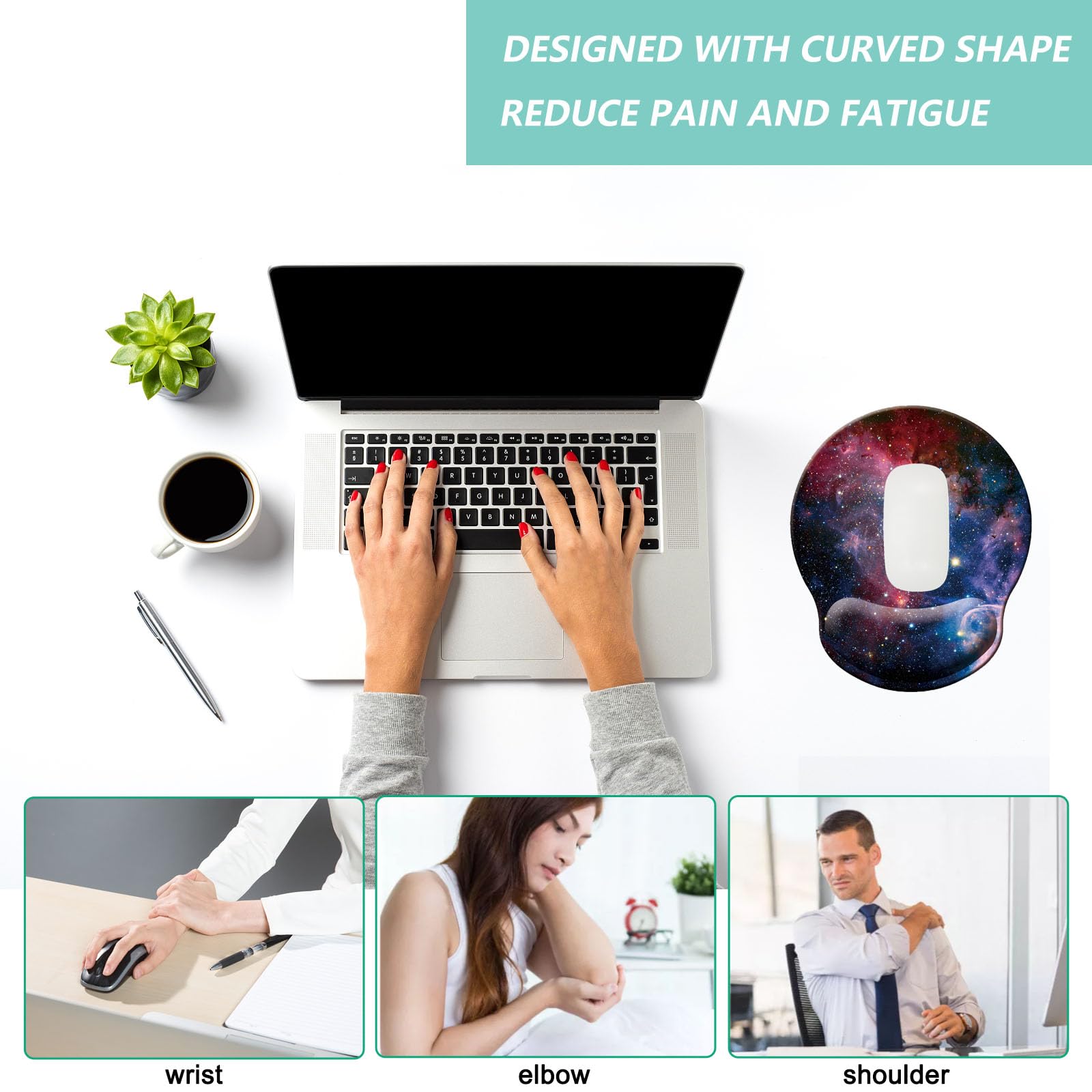 PROTECTION - Protect your wrist, shoulder by using our mousepad with wrist support. It can reduce fatigue, relieve pressure on your hand, wrist, elbow and shoulder, avoid carpel tunnel syndrome, and avoid excessive friction between wrist and desk.