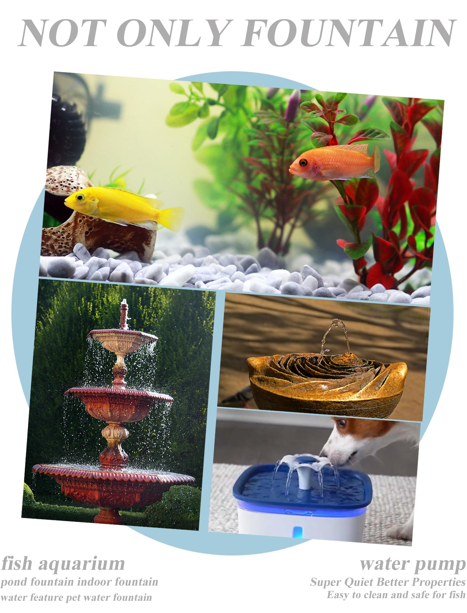 【Wide Range of Applications】: This is a high-performance, energy-saving pump and is well-designed for use in fish tanks, fountains, aquarium, pet fountain and hydroponics systems and etc.
