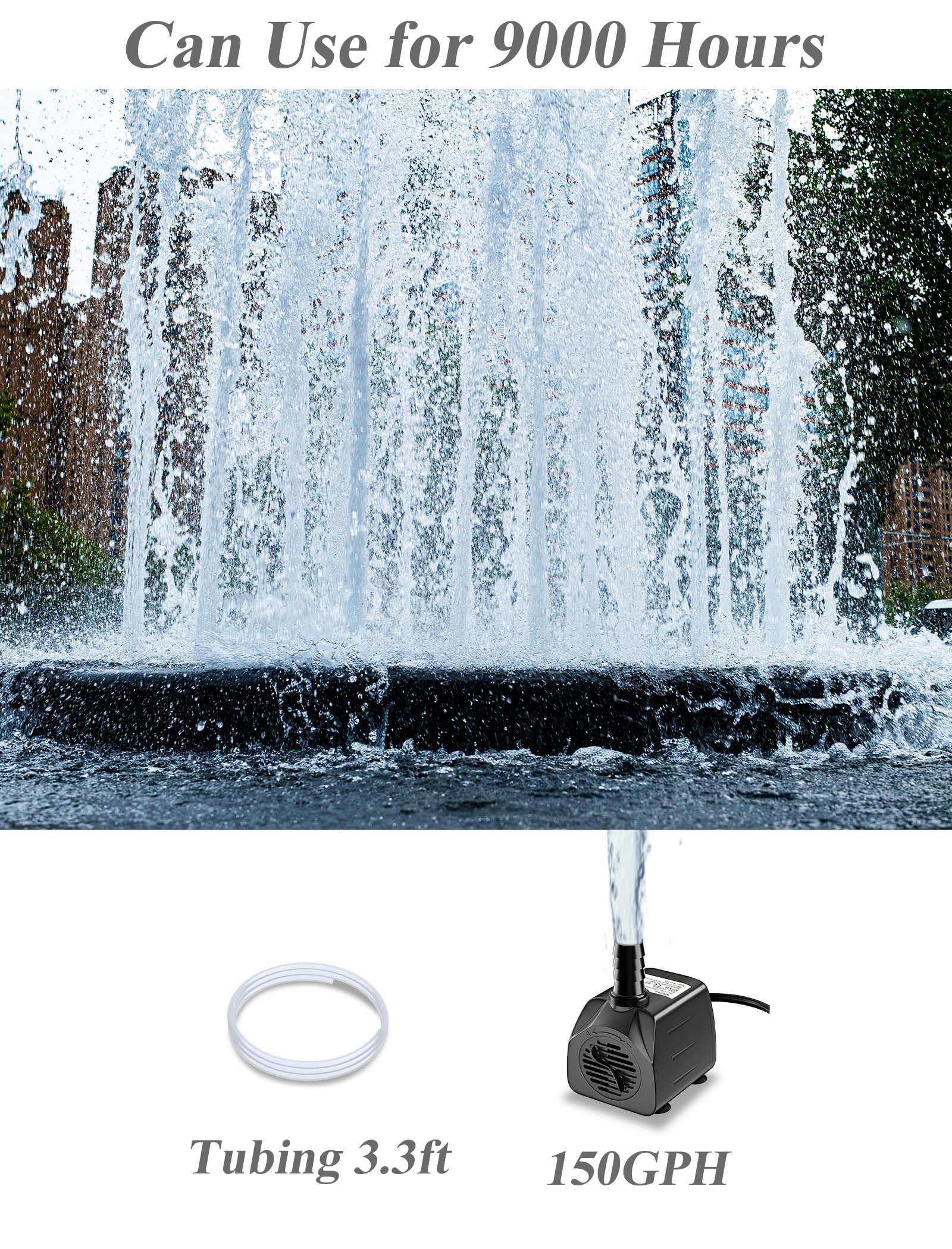 【Adjustable Flow Rate】: The fountain pump is designed with an adjusting slide cover, allowing you to get the speed of water flow you want. The maximal flow rate is 150GPH(570L/H).