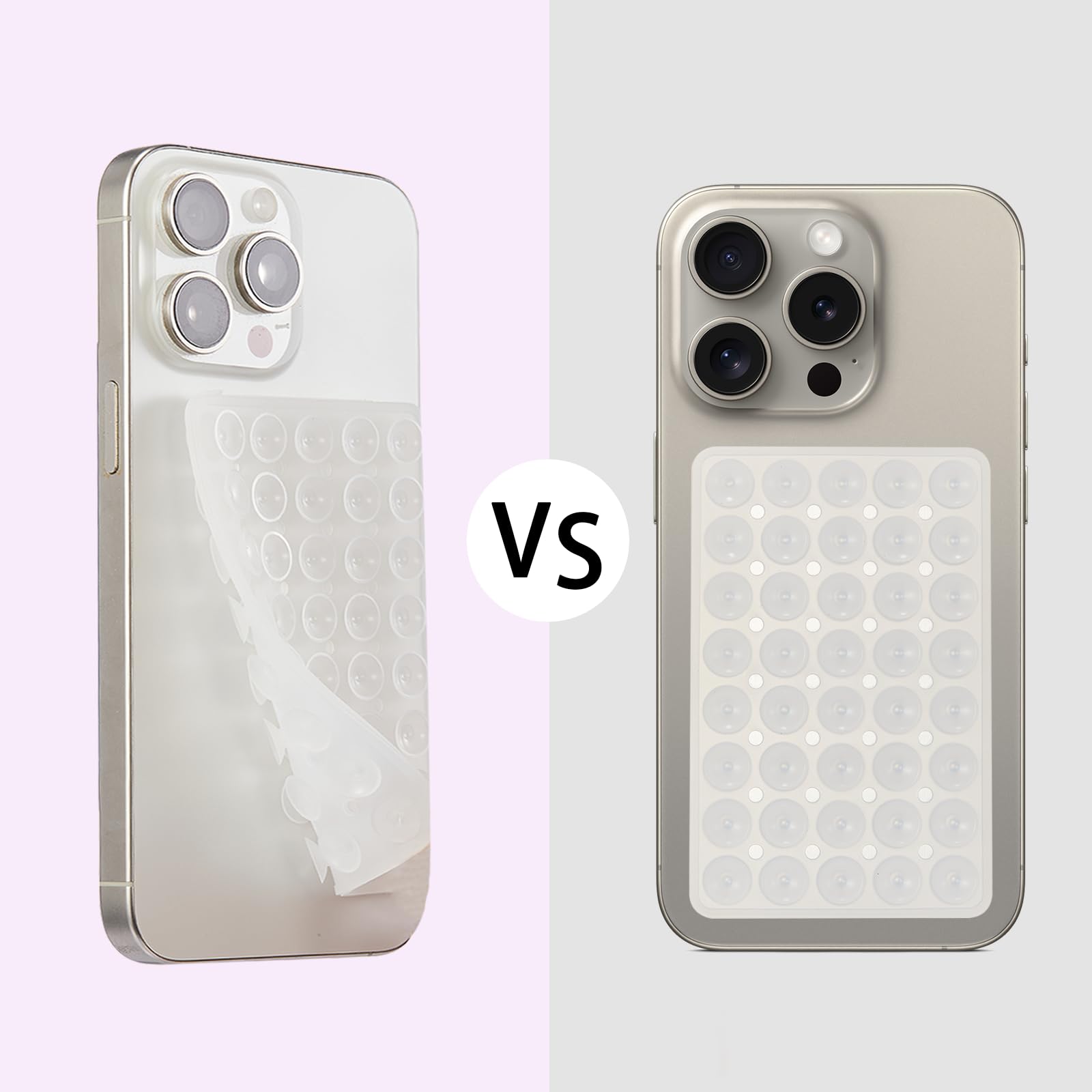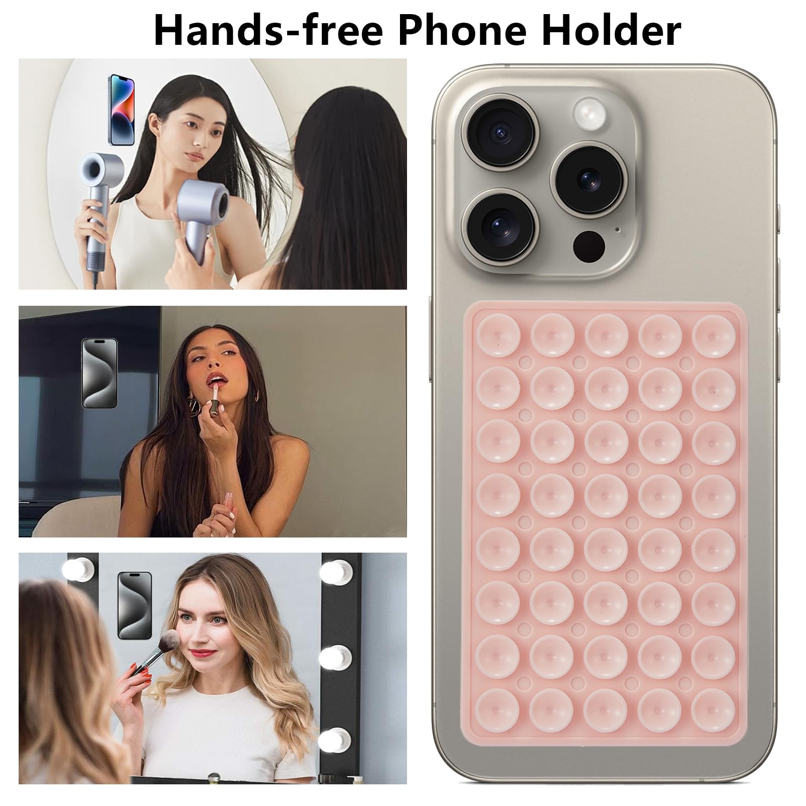【Secure & Strong Grip】Silicone double-sided suction cup phone holder has 40 independent suction cups on both sides, provides solid and stable support for the phone, so you don't have to worry about your phone falling during use. This double-sided suction cups phone case mount can be easily removed and used at any time and leaves no adhesive residue.