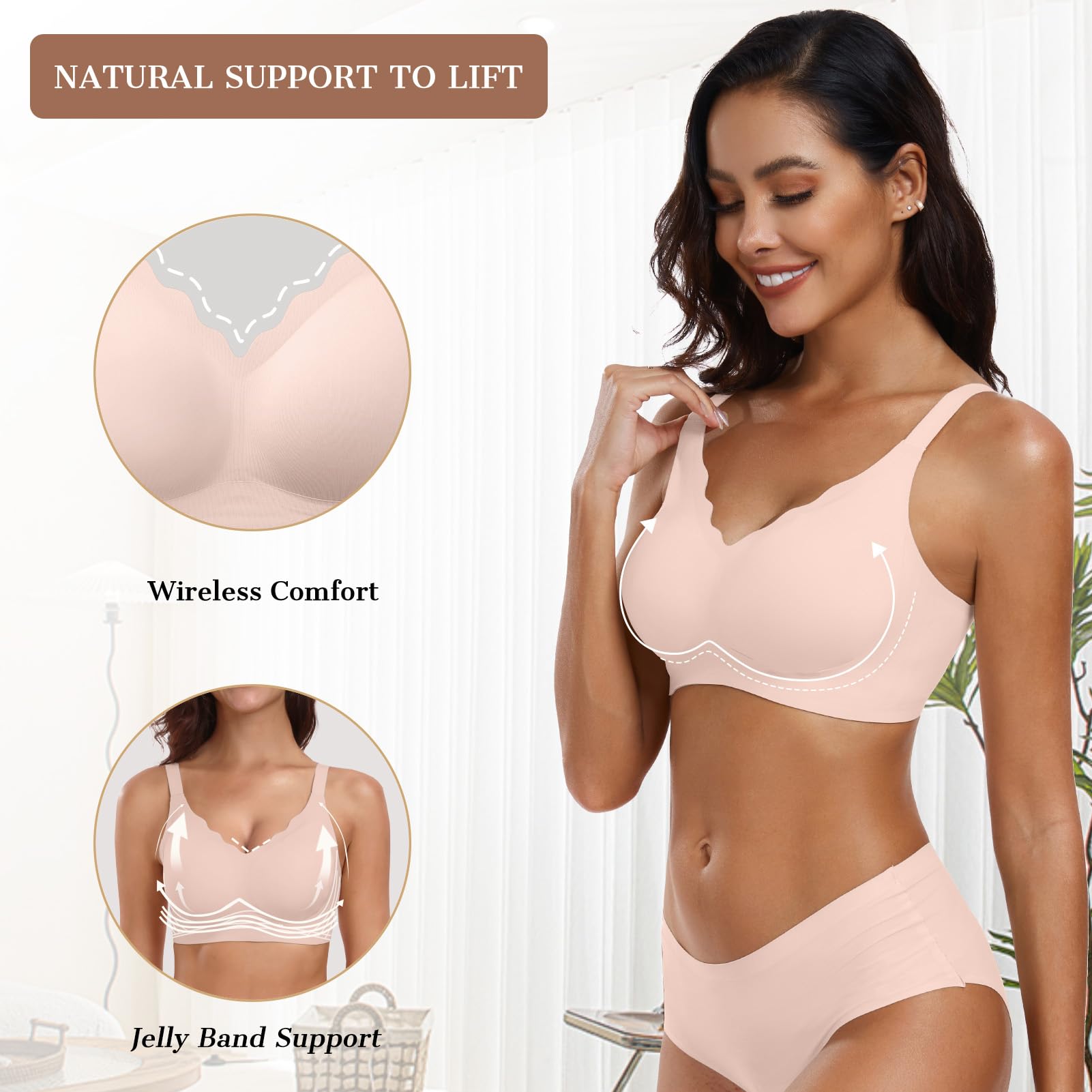 Soft Supportive bras with Jelly Band - OEAK Push Up bras feature a bigger hugging “W” shape and innovative 3D support technology formed by the liquid jelly band provides 360°round support for your breasts, creating a fully and natural-looking chest without the discomfort of a traditional underwire bra. The wireless bra with removable pads adds to the comfort level, ensuring a buttery soft feeling, and maximum comfort all day long.