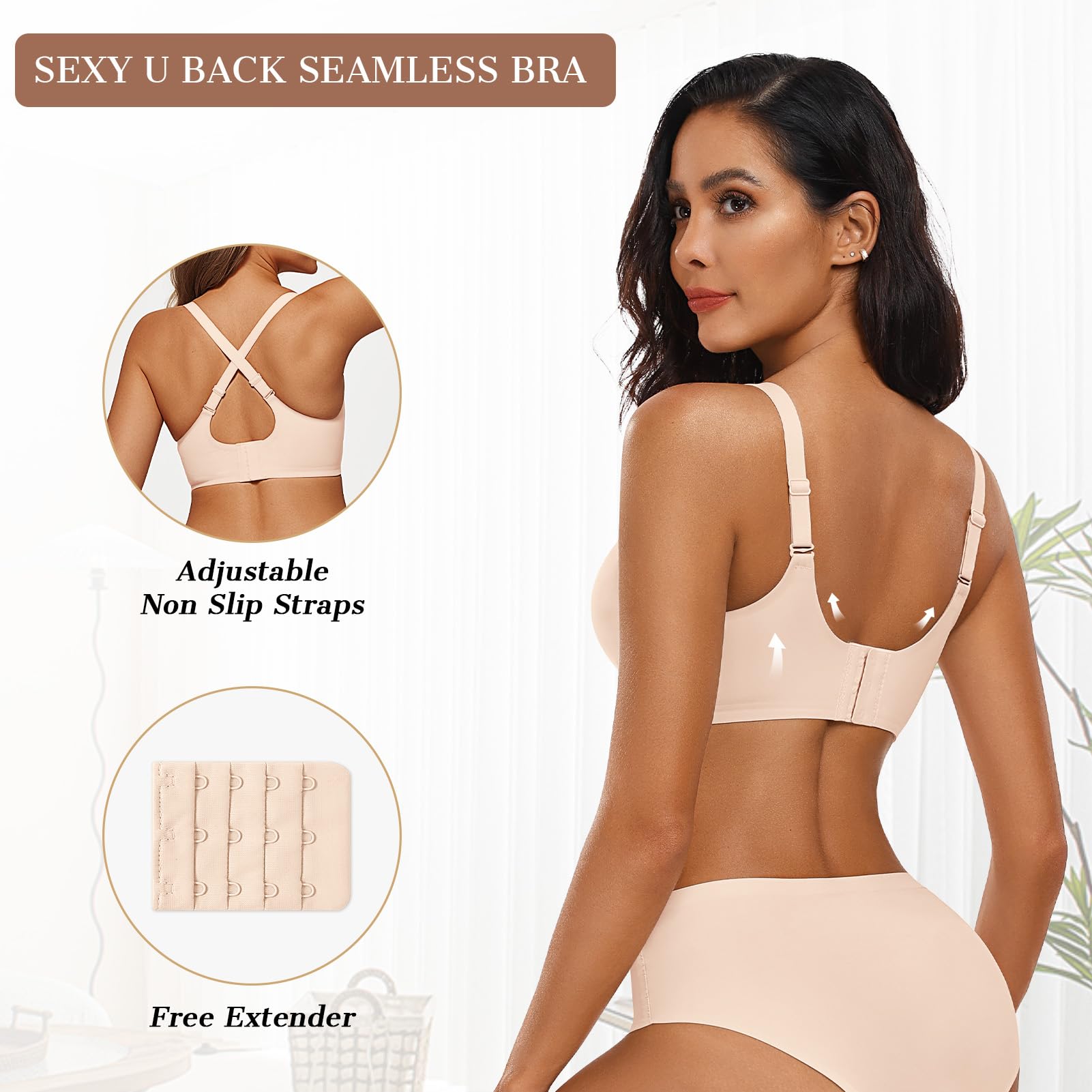 Adjustable Design - The bras feature adjustable shoulder straps and back closures, allowing you to customize the fit to your comfort level. The 4-row back hooks are designed to minimize back fat and provide additional support, ensuring a smooth and flattering silhouette. The widened straps offer effective support and stay put all day without digging into shoulders.