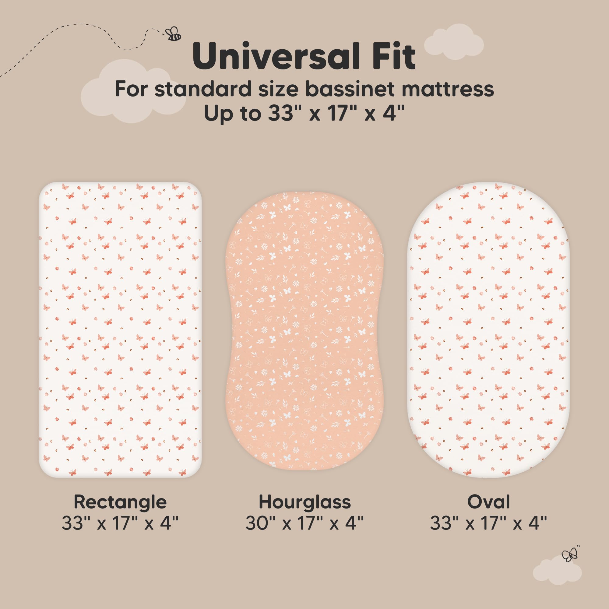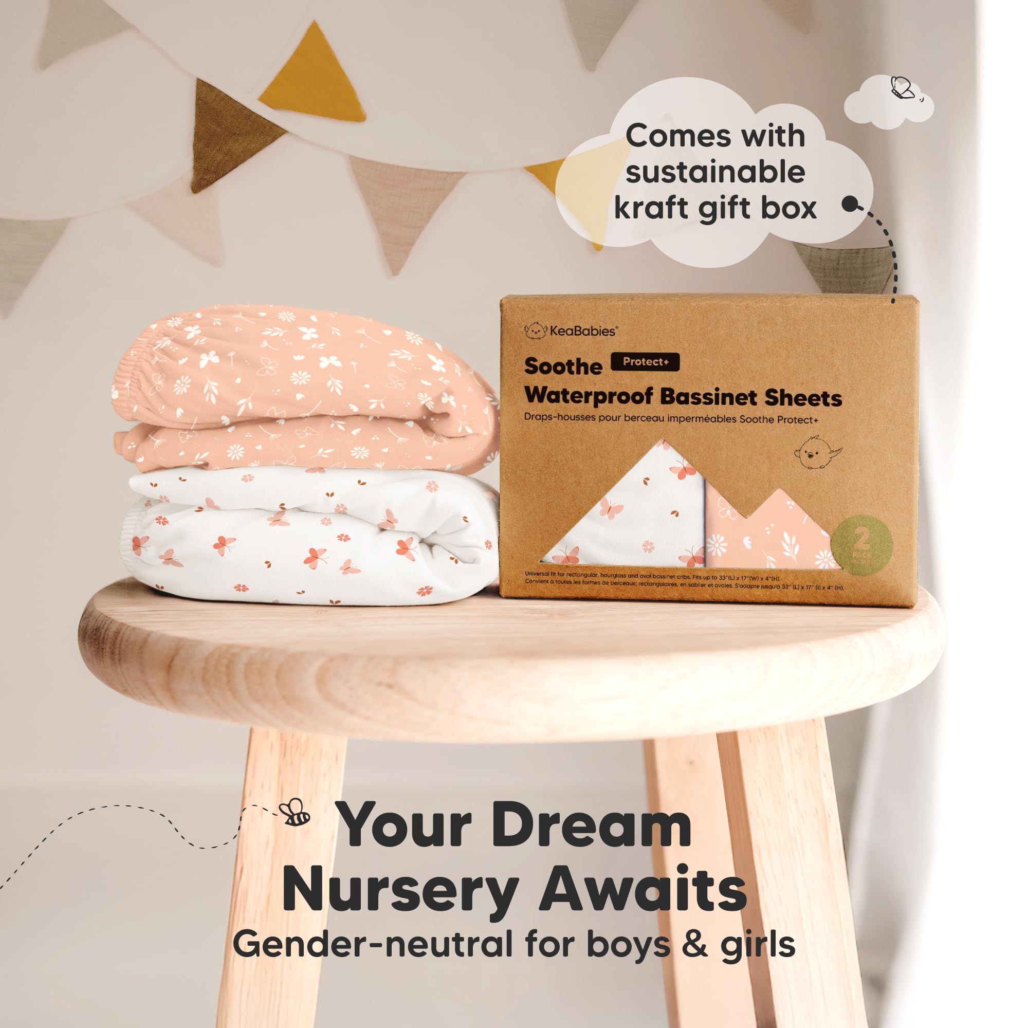 2-Pack Waterproof Baby Bassinet Sheets - KeaBabies Soothe Waterproof Bassinet Sheets, sized at 33" x 17" with a depth of up to 4", provide a universal fit for all bassinet mattress pad types. Suitable as hourglass, oval, rectangle bassinet sheets.