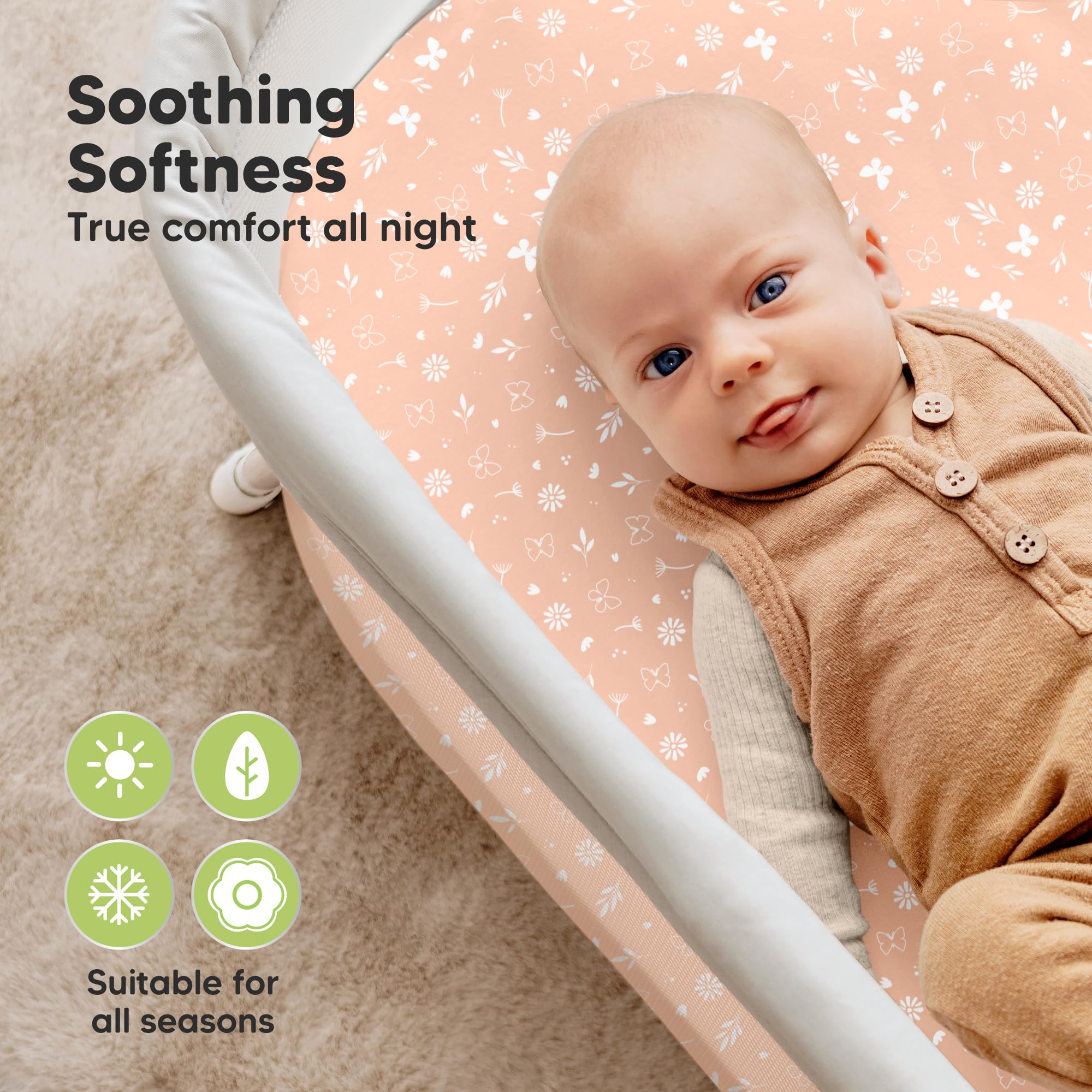 Soft & Breathable - Made of 100% premium quality jersey cotton, the waterproof bassinet covers ensure maximum comfort for your baby during sleep time. Our breathable bassinet mattress sheets are gentle on baby delicate skin.