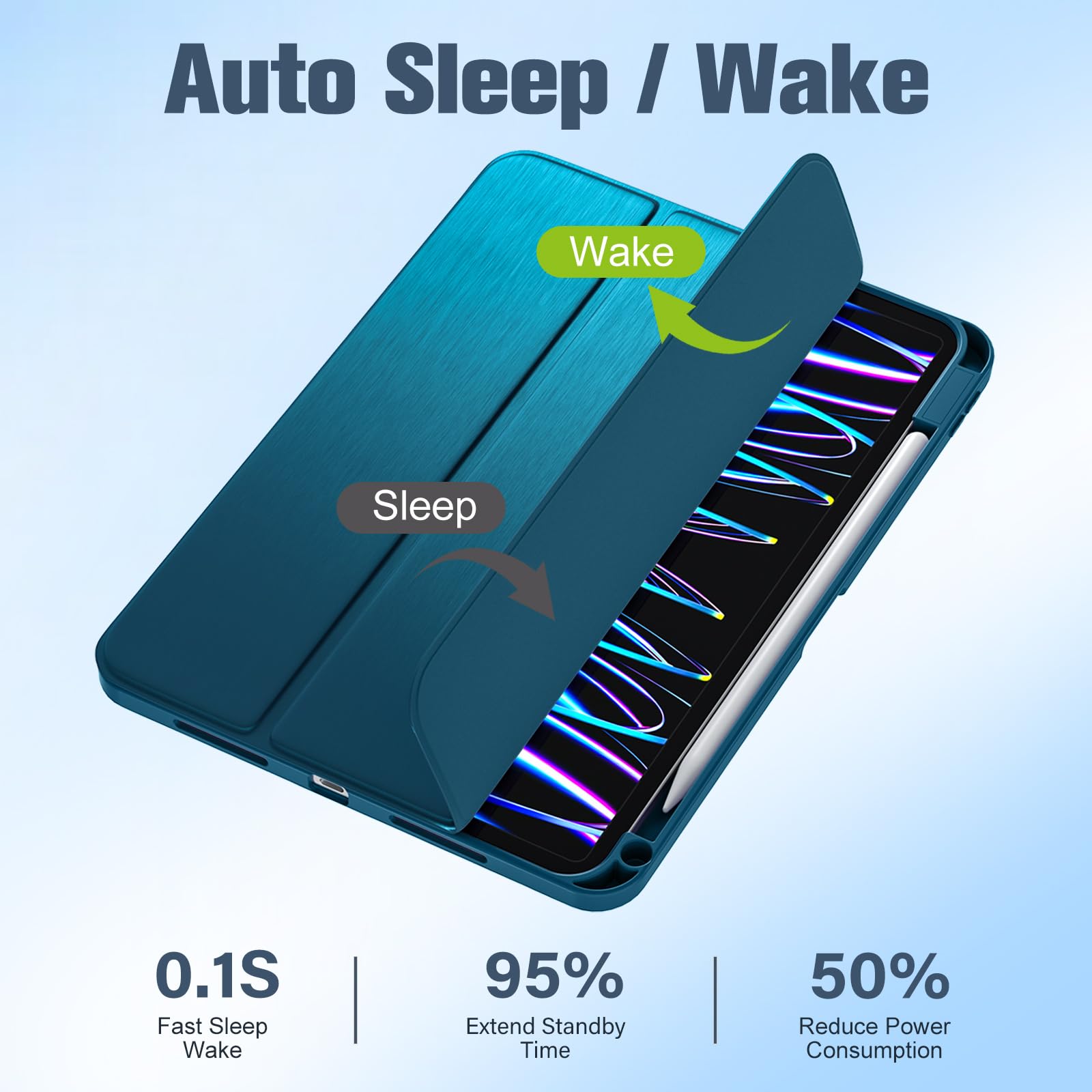 【Auto Sleep & Wake 】This iPad Pro m4 11 inch case supports auto wake and auto sleep functions, enabling significant power conservation and extended battery standby time. As a result, charging frequency is drastically reduced, enhancing overall device efficiency.