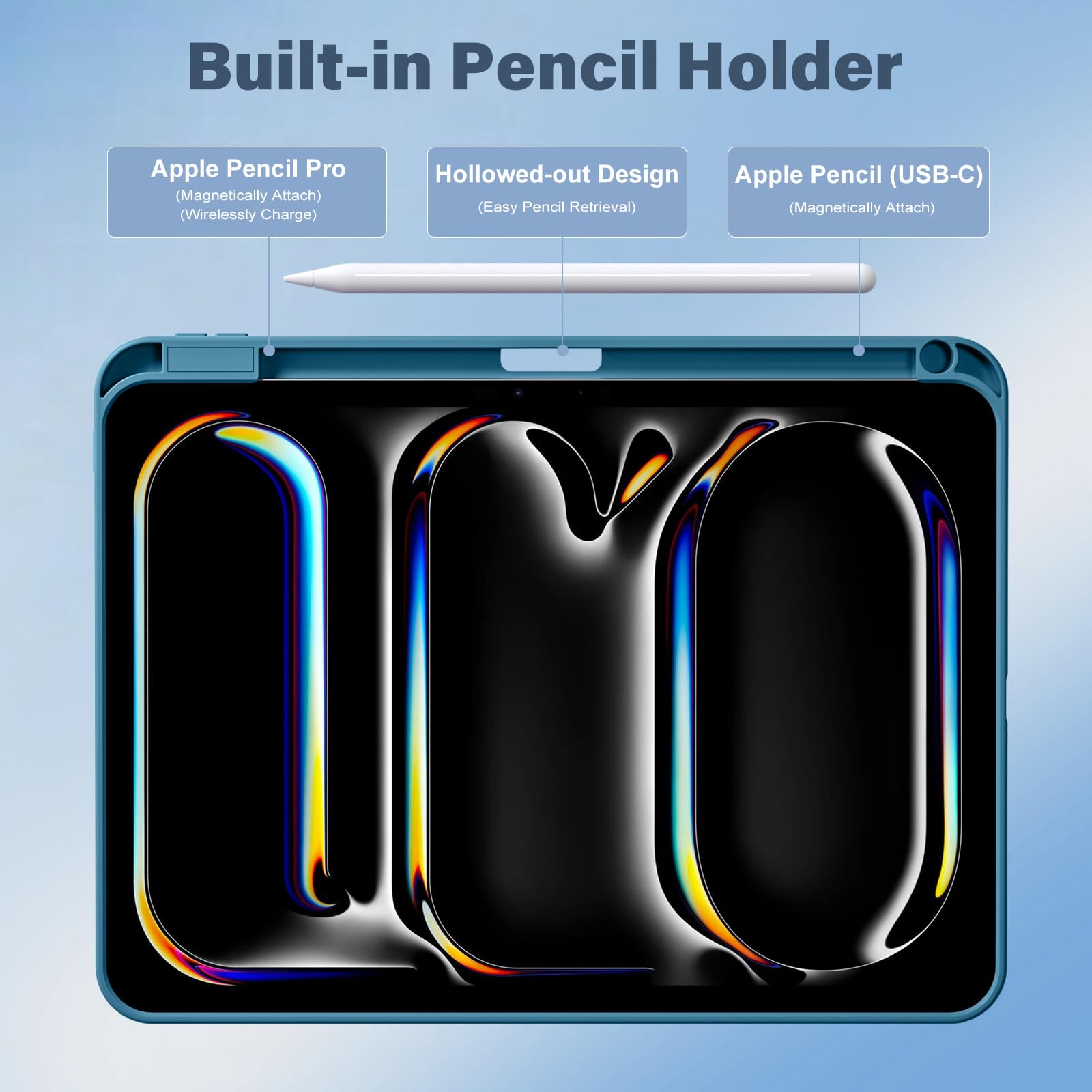【Built-in Pencil Holder】This iPad Pro m5 11 inch case features a built-in pencil slot designed specifically for the Apple Pencil, allowing for convenient storage of both the Apple Pencil Pro and Apple Pencil USB-C. It ensures easy access while effectively preventing loss or damage. (Note: Apple Pencil is NOT included)