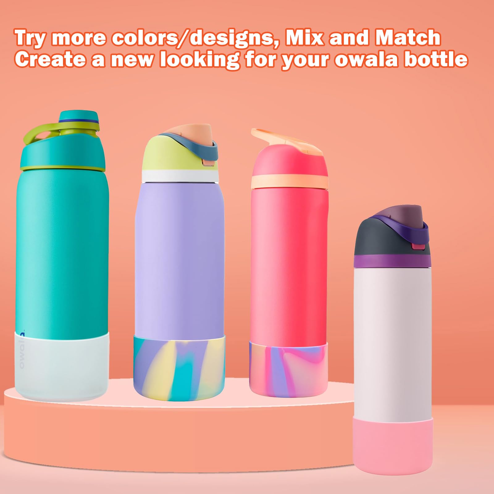 🌟BOOT SIZE 2.95''Wx1.89''H--Our Silicone boot was designed for 24oz stainless steel Owala FreeSip, Twist and Flip water bottles. It is also extensively compatible with Stanley Quencher(30/40oz) H2.0 and Stanley lceFlow (20/30 oz) Tumblers. Hydro Flask Wide Mouth (12/16/18/20/24 oz), Hydro Flask Standard Mouth (18/21/24 oz), Yeti Rambler Tumbler(20/30 oz), Yeti Rambler Travel Mug(20/30 oz) and more other brand bottles with 2.8-2.95inch bottom diameter