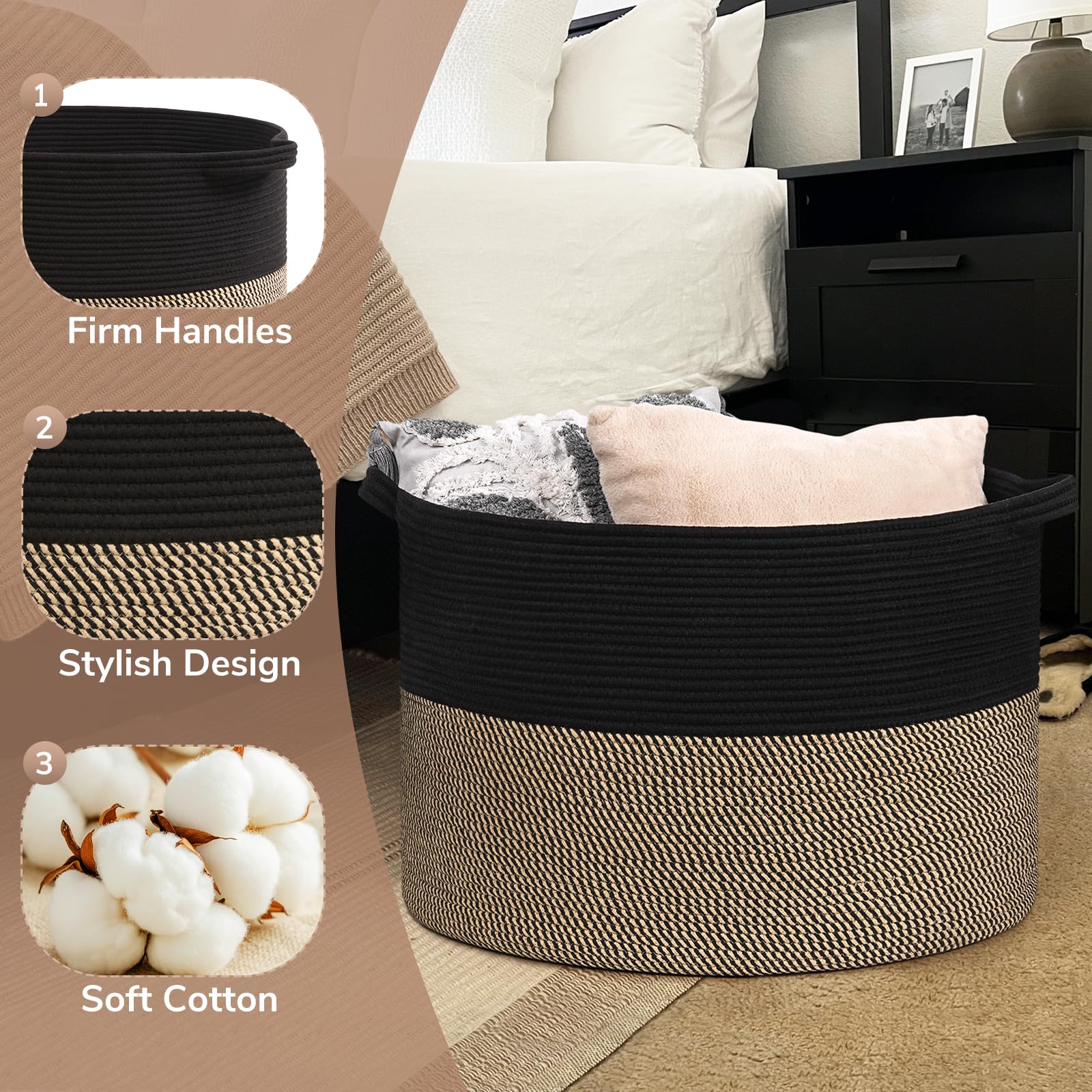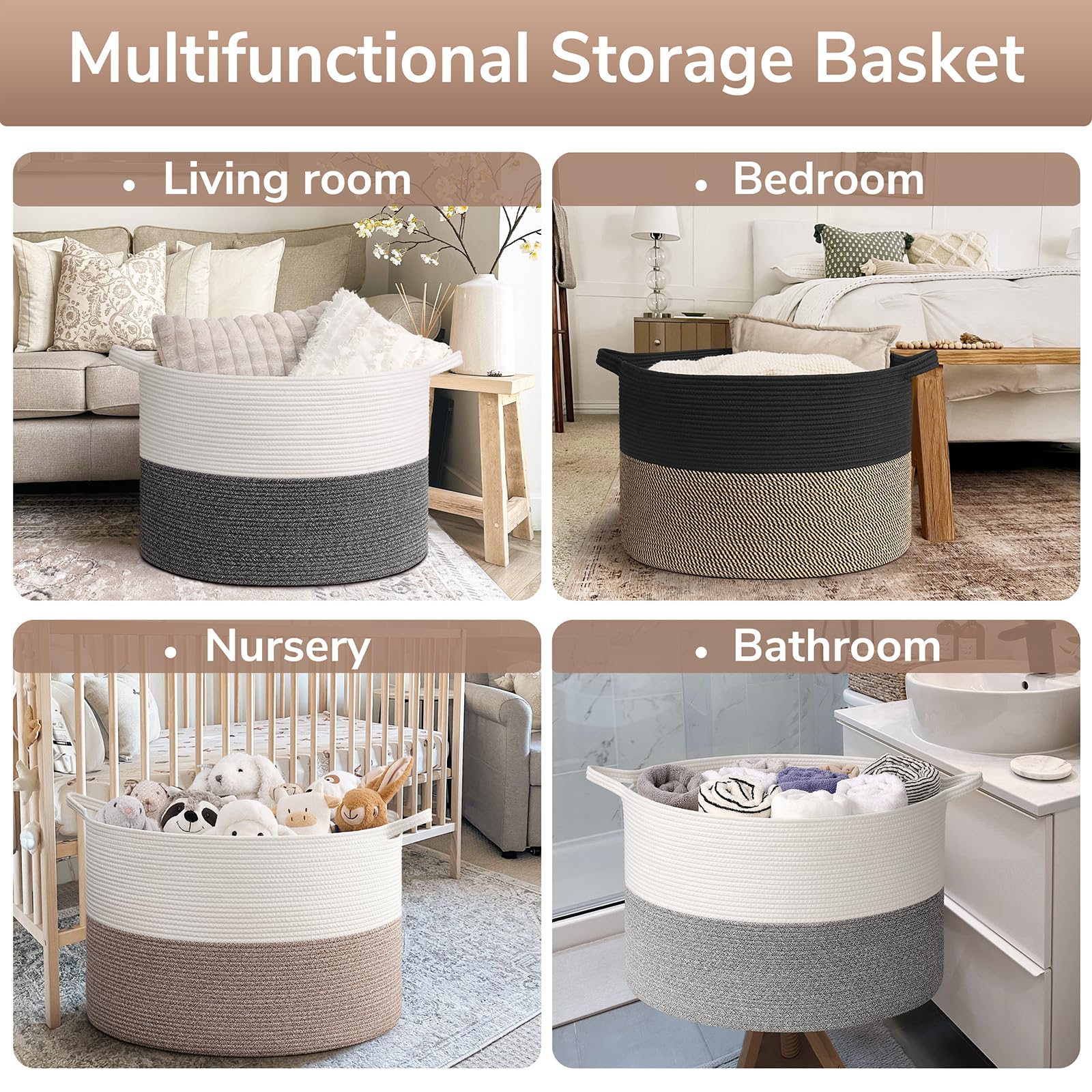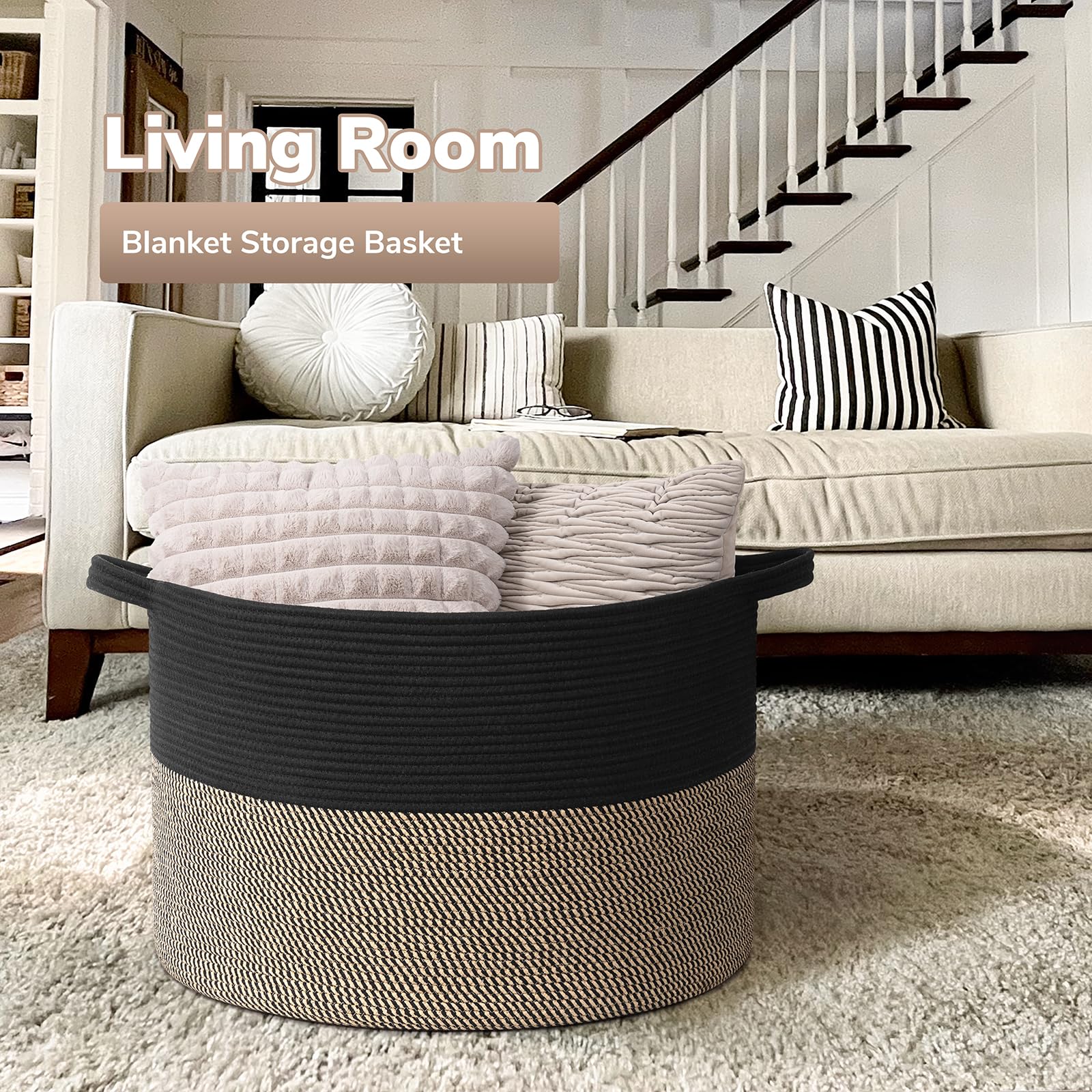 Easy to Carry. The rope basket comes with two easy-to-grab handles for hassle-free transportation from room to room