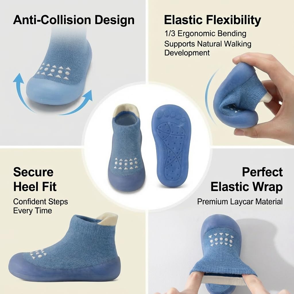 Crashworthiness:Baby slipper adpots thickened rubber Anti collision Shoe head, an extra barrier to protect baby's feet from injuries, providing all-around protection for tiny explorings.