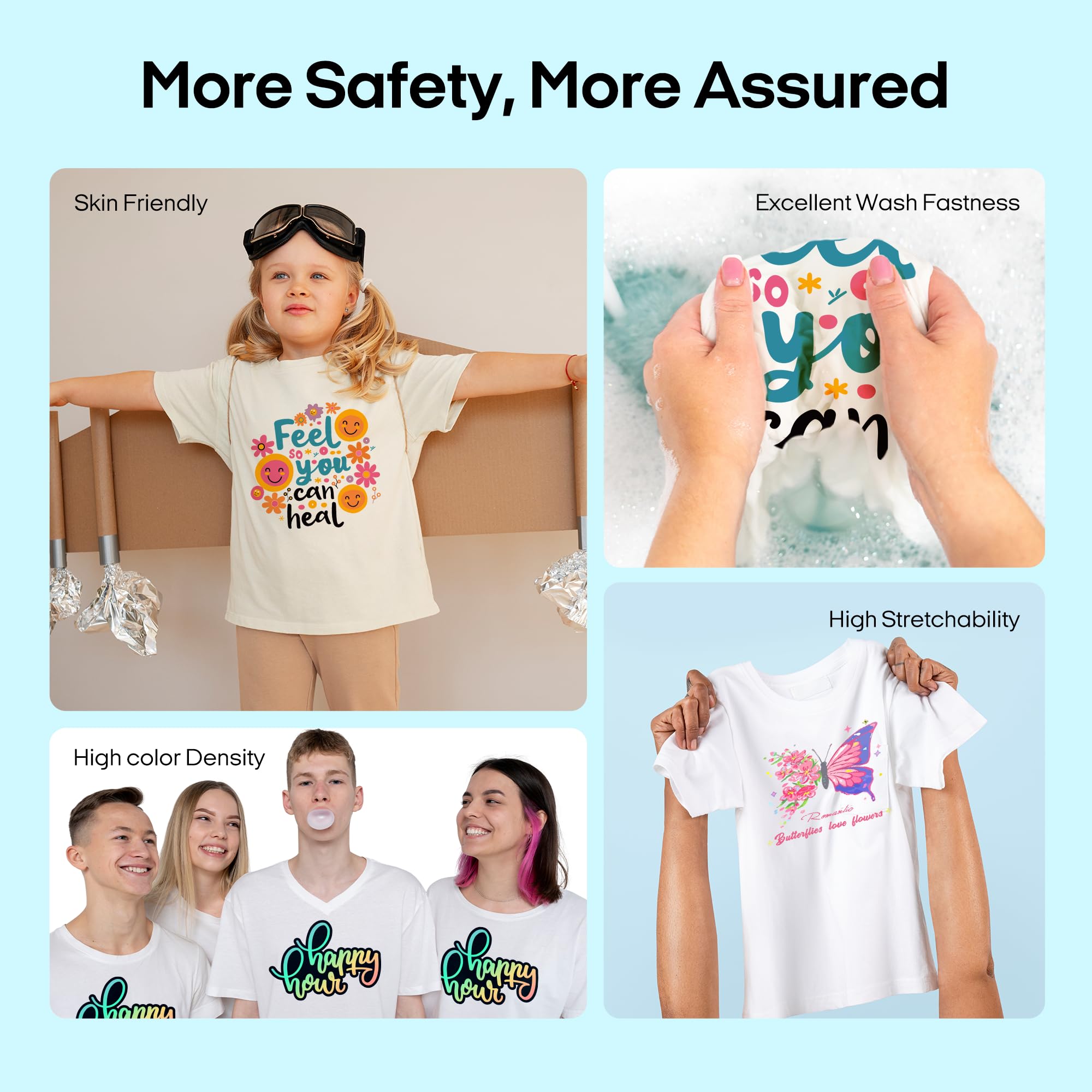 [Wide Application] Procoloredfun DTF ink is suitable for a variety of applications and can be transferred to a variety of dark and light fabrics, including polyester, cotton, and even leather. Make special T-shirts for Christmas, Thanksgiving, Valentine's Day, Halloween, and New Year. Best for your family, friends, and business