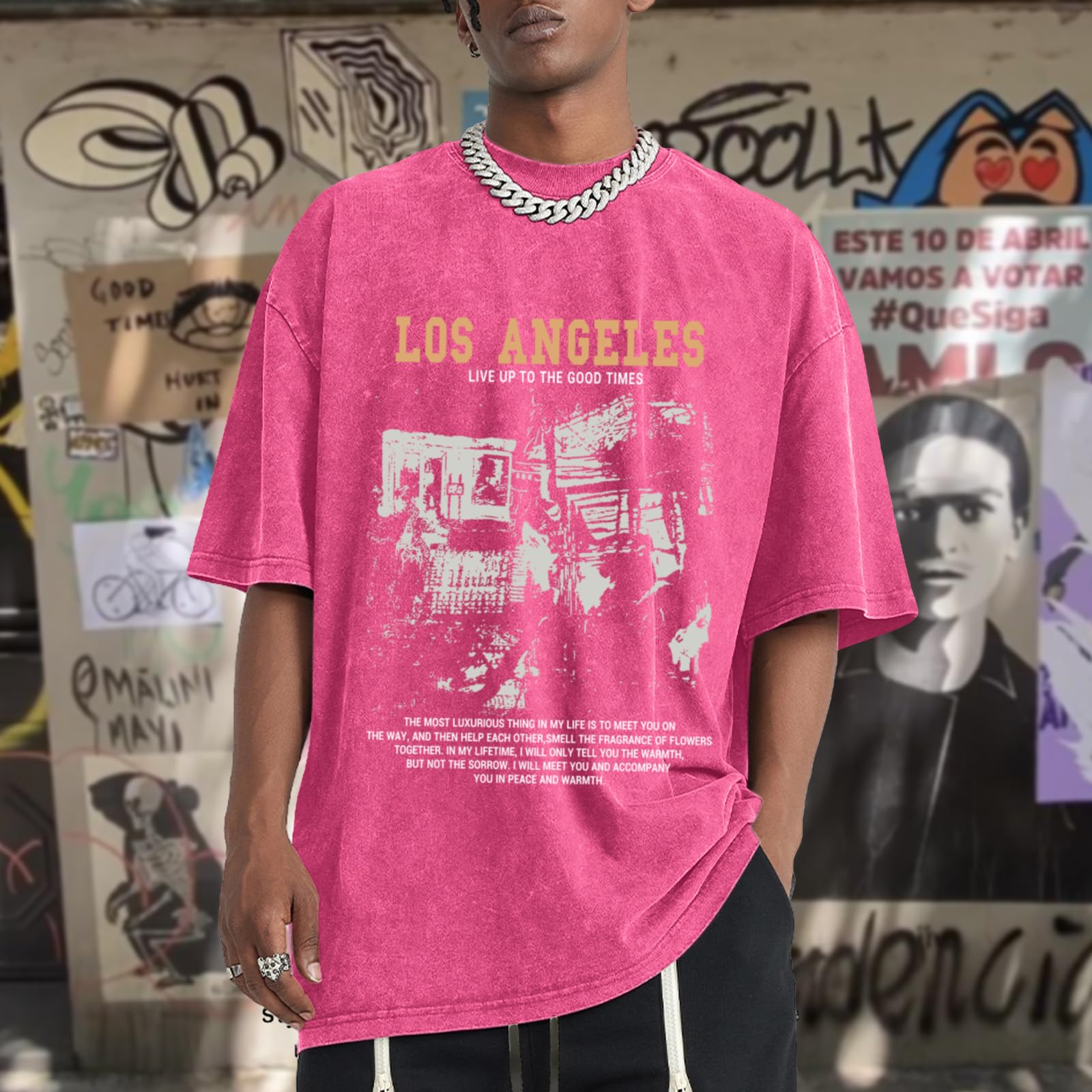 Stylish Versatility: Embrace the vintage vibe with our los angeles short sleeve shirt, designed to be fashion-forward yet classic. These baggy shirts elevate any outfit, suitable for pairing with shorts, jeans, or sweatpants