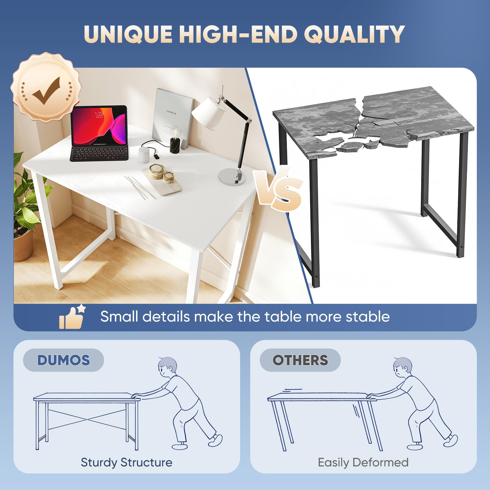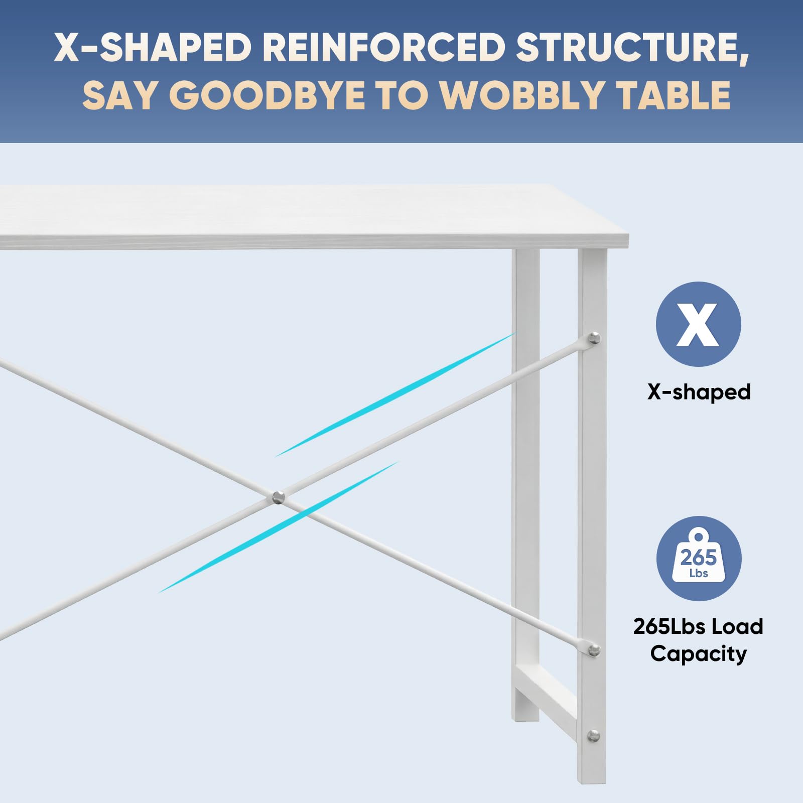 【X-Shaped Reinforcement Structure】Unlike flimsy tables, DUMOS uses a smart X-brace design right in the center. This stops annoying wobbling and keeps your table perfectly flat for years.