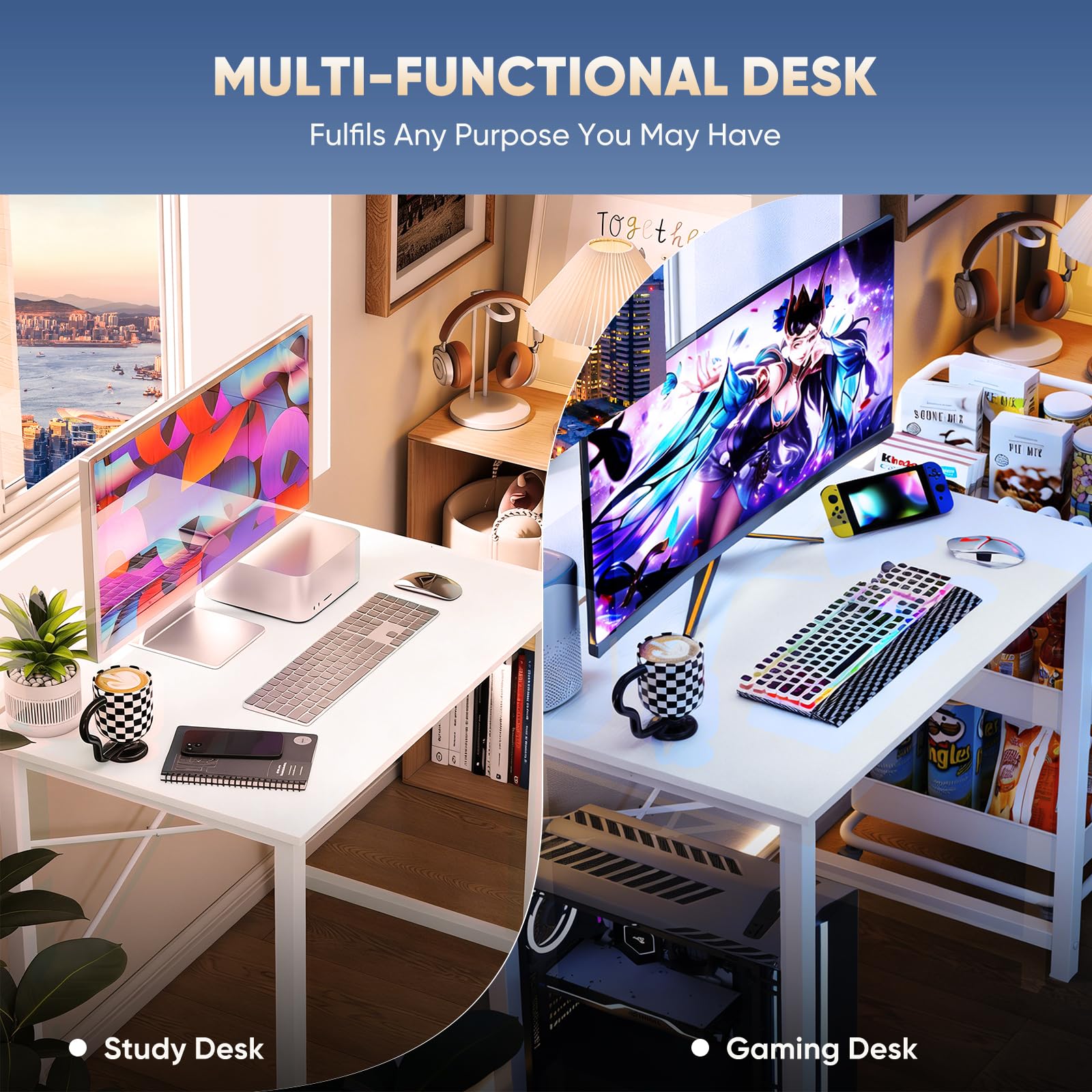 【Premium Material】Our home office desk features a scratch-resistant, water-resistant tabletop that withstands coffee spills. Supported by a sturdy steel frame, it’s designed to handle your busiest workdays.