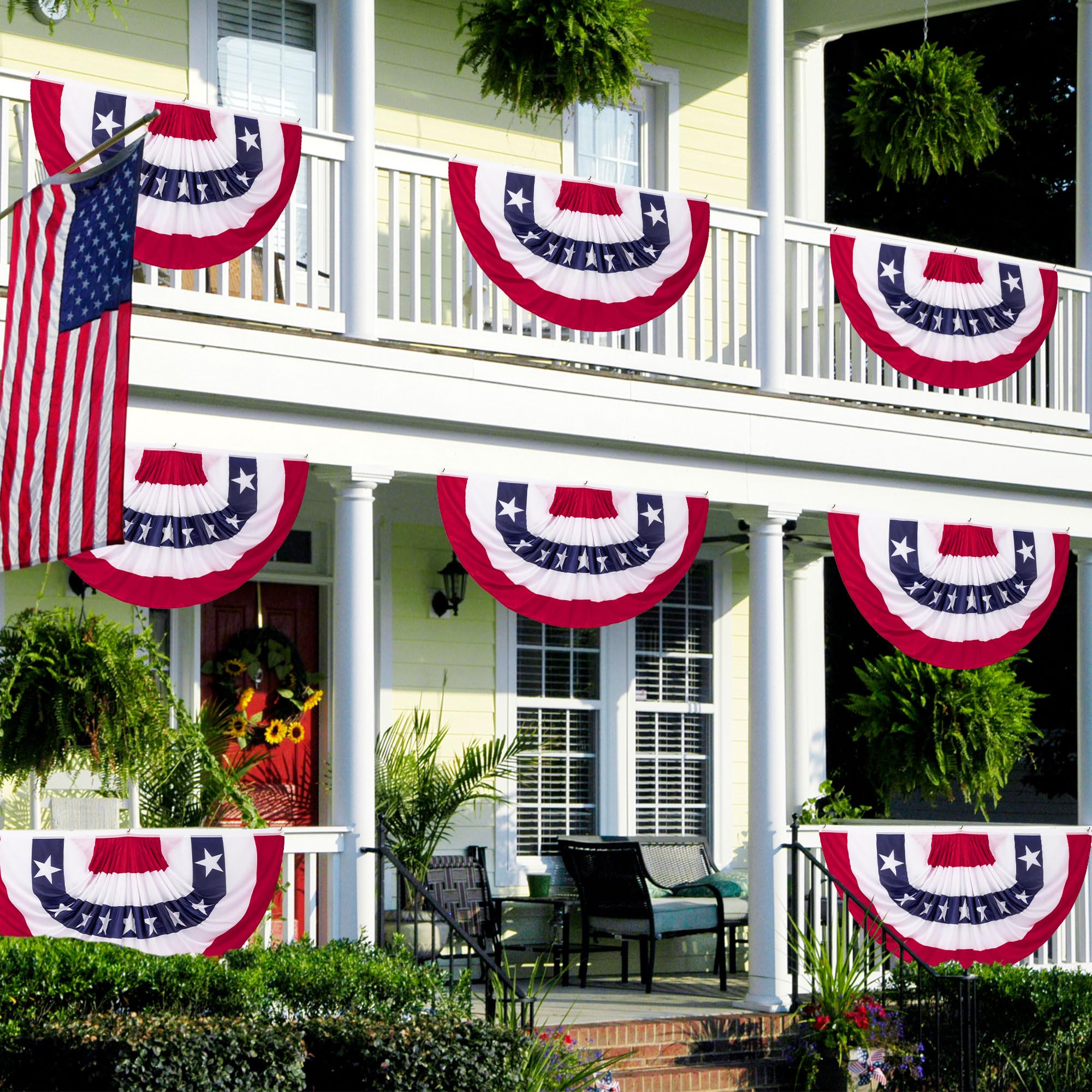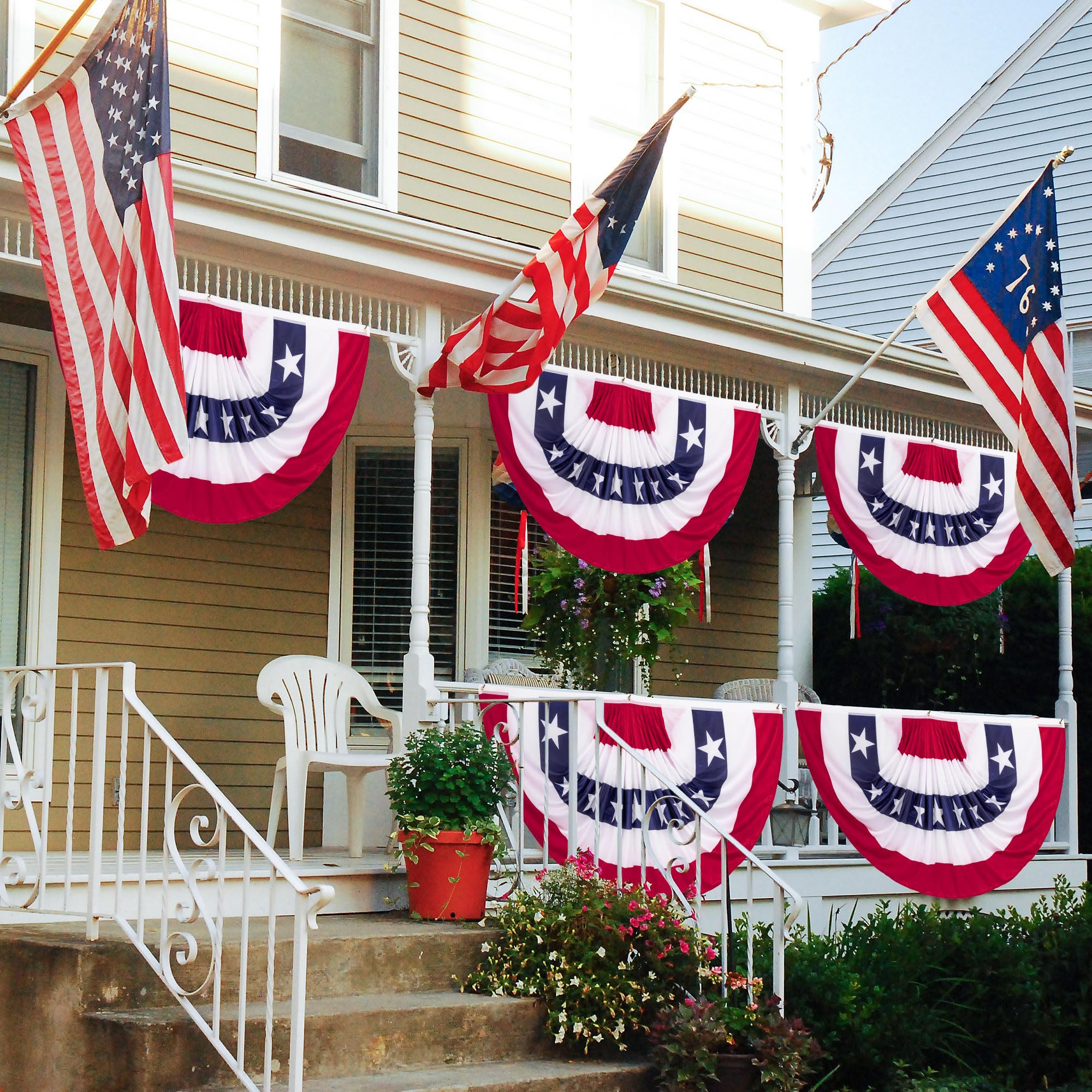 Easy to Hang - The patriotic banner flags can be easily hung with the 3 grommets on the flags. These July 4th decorations are fantastic for decorating doors, porches, fences, windows, balconies, patios, yards, gardens, streets, and more.