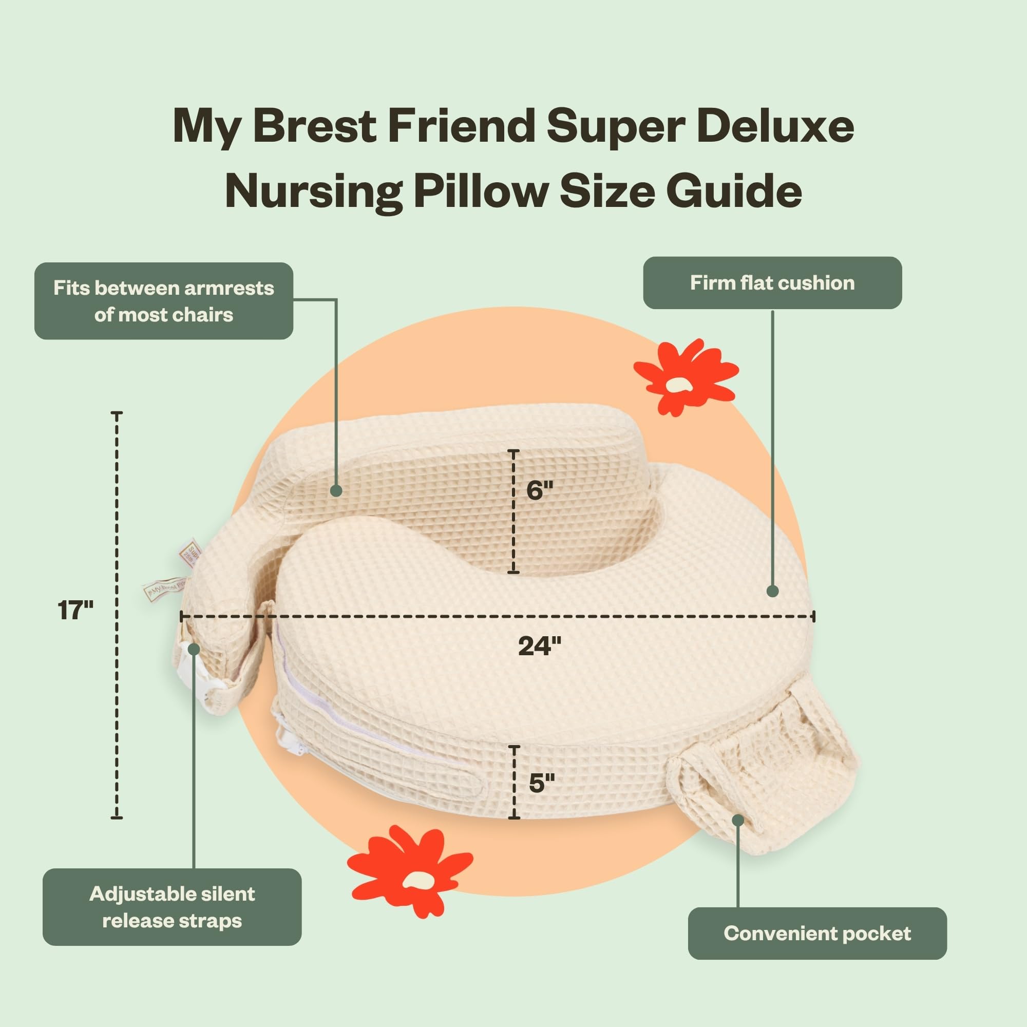 My Brest Friend Super Deluxe Nursing Pillow-Enhanced Comfort & Ergonomic Breastfeeding Pillow for Ultimate Support For Mom & Baby-Adjustable and with Handy Side Pocket,100%Woven Cotton Oatmeal Waffle