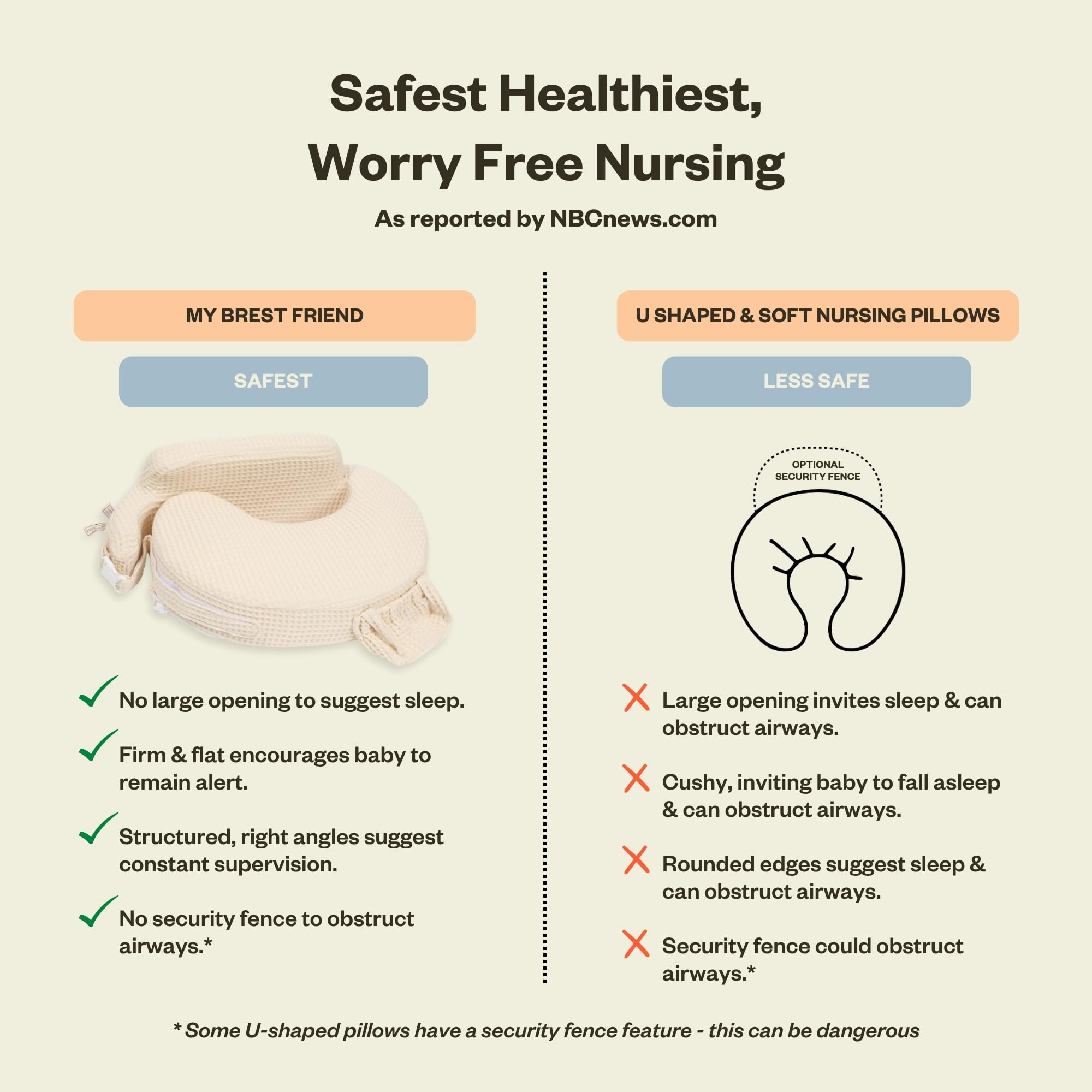 COMFORT W/ EXTRA-THICK CUSHION: Our nursing feeding pillow features an extra-thick cushion that provides comfort, firm & flat support. The design eliminates the gap found in crescent & U-shaped pillows, ensuring a connection between you & your baby during feeding time. Our nursing pillow offers security, making each feeding session a worry-free bonding experience.
