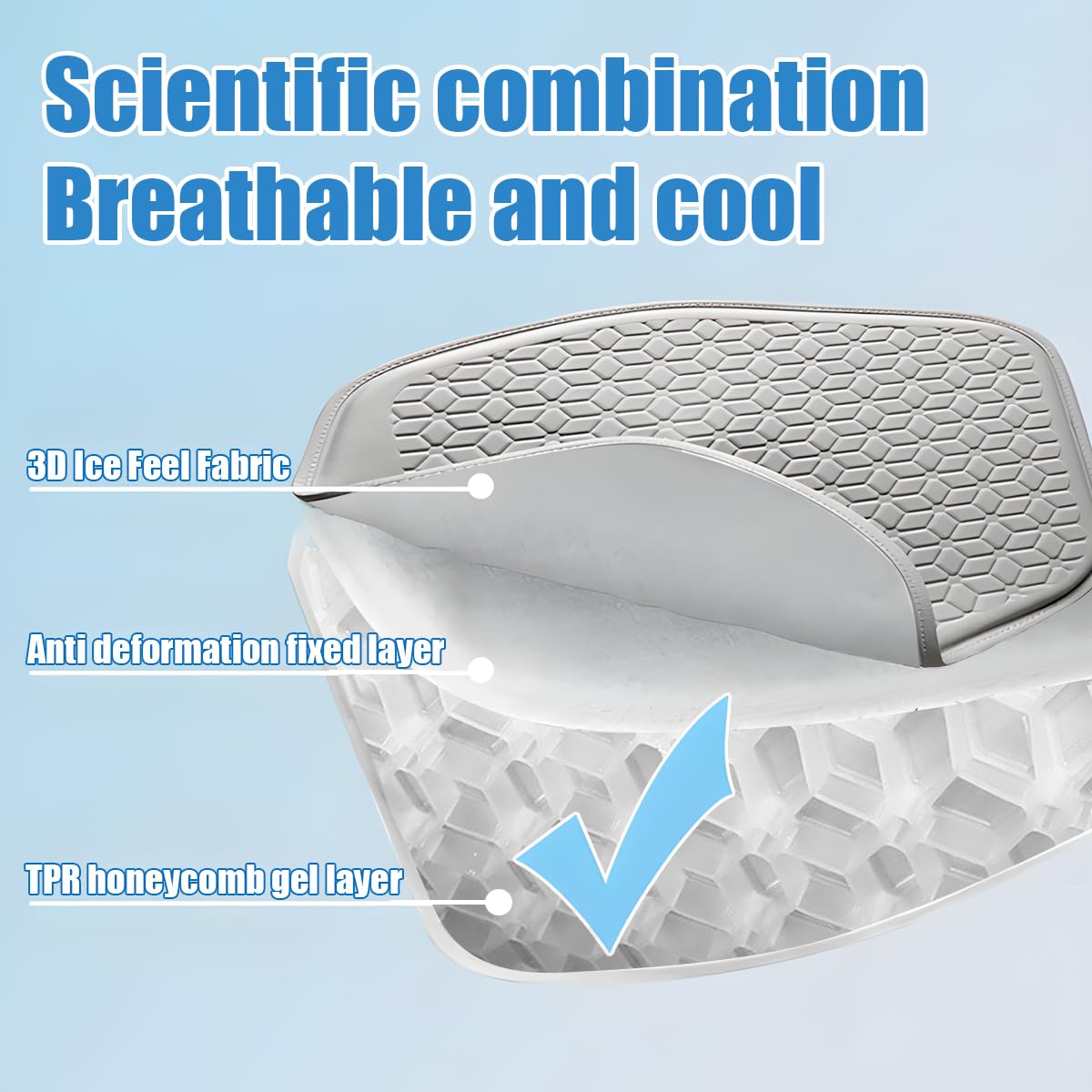 Cool and Breathable: This TPR cold gel has the property of greatly reducing the heat conduction and so on. It is not affected by the high temperature of the environment in the hot summer. It quickly conducts body heat away. With the breathable fabric and honeycomb ventilation structure, air can circulate freely inside the cushion, taking away heat and keeping it cool. You can say goodbye to the hot seat and enjoy a cool and cozy driving time in the hot summer.