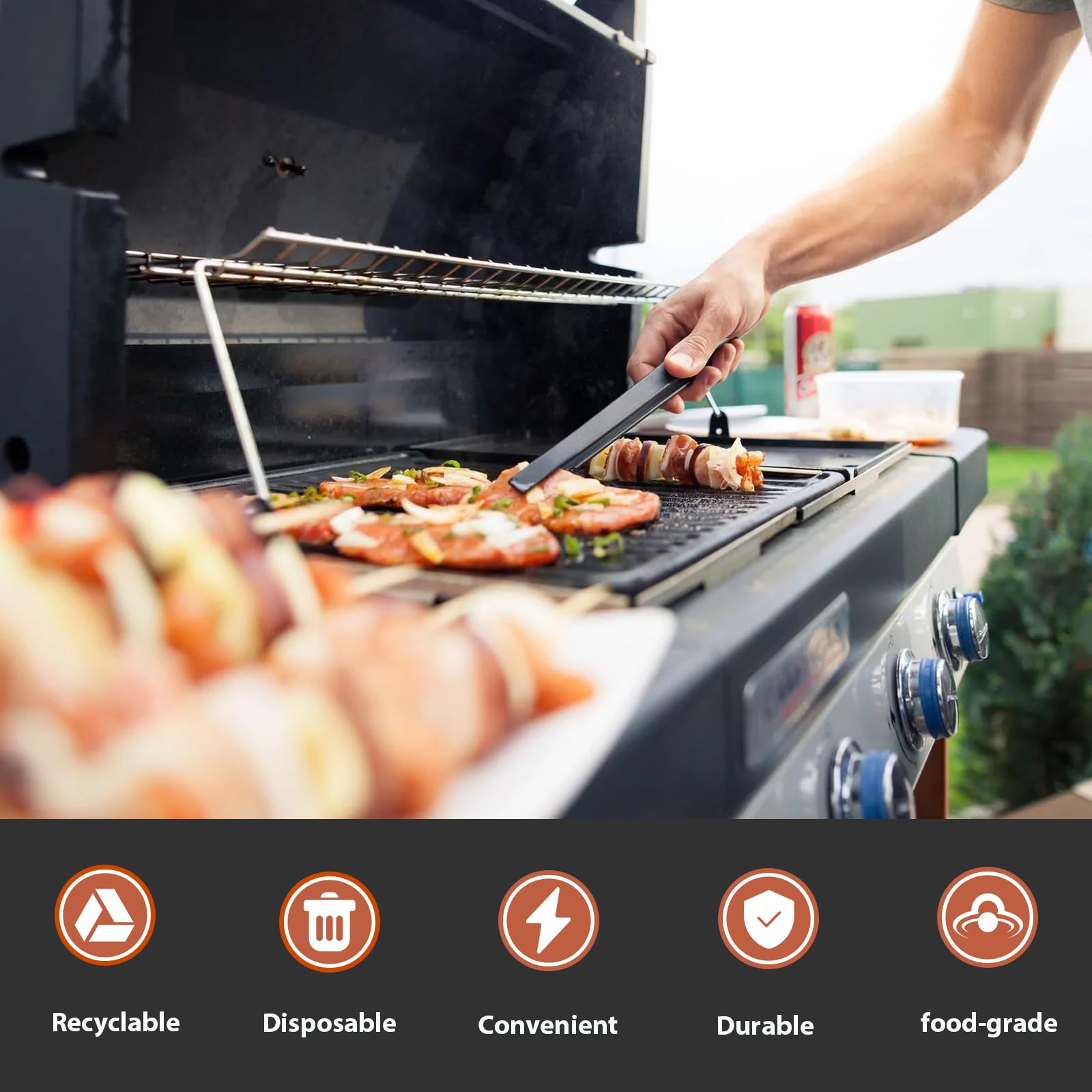 Multipurpose : Absorbs and reflects heat more efficiently, withstands extremely high temperatures without warping or melting, perfect for use in the oven or on the grill. Our grease cup liner can also be used in ovens and freezers, ideal for preparing food or preserving food before you get ready to grill. Great for baking, barbecues, grilling, beach, camping, picnics, parties and more