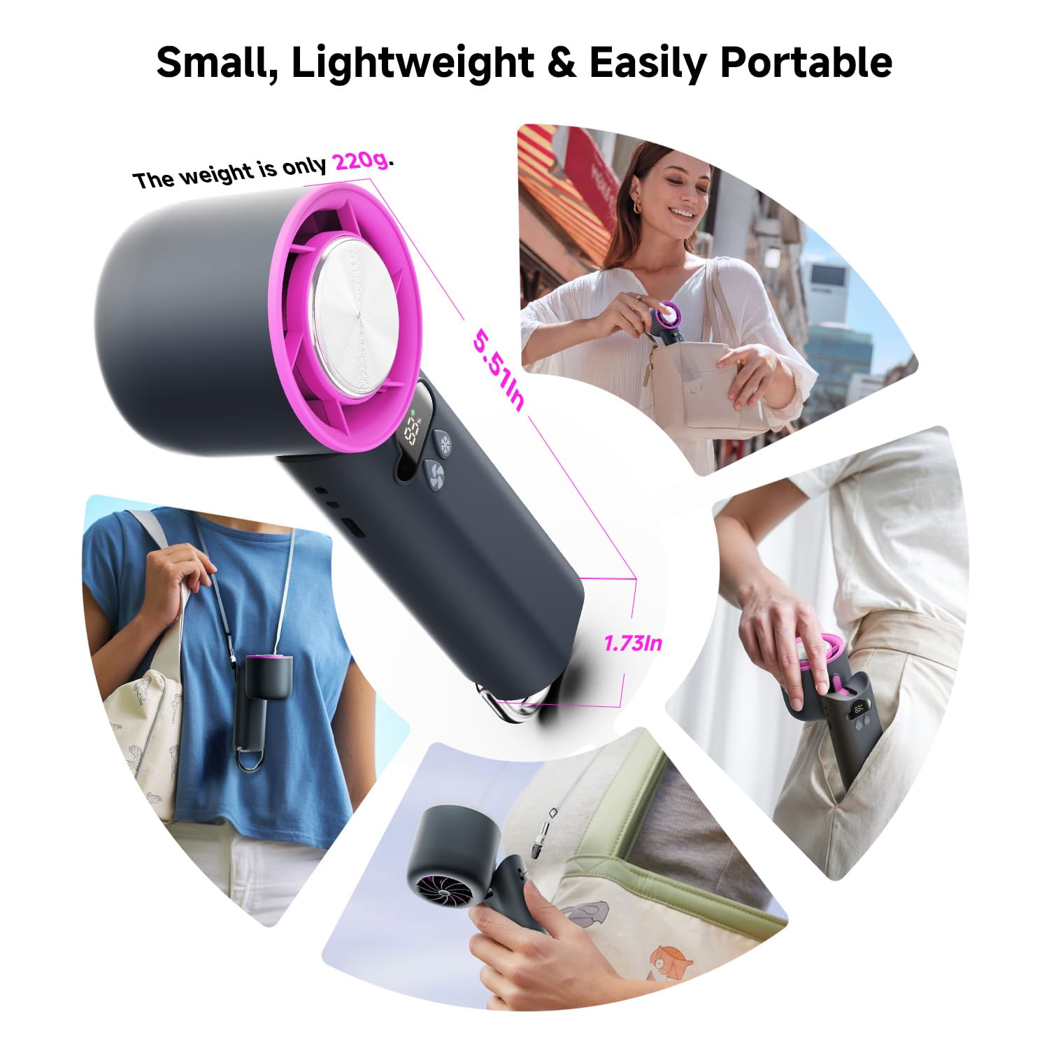[Easily Carry & Bendable] - The size of this portable mini fan is only 0.49lb and 90 ° foldable. You can put it in your pocket or bag, and it is also equipped with an anti-lost lanyard, it can be around your neck. So no matter where you go, this handheld fan can keep you cooling, it is your cooling companion for traveling and outdoor sports, also a thoughtful gift for women/men.