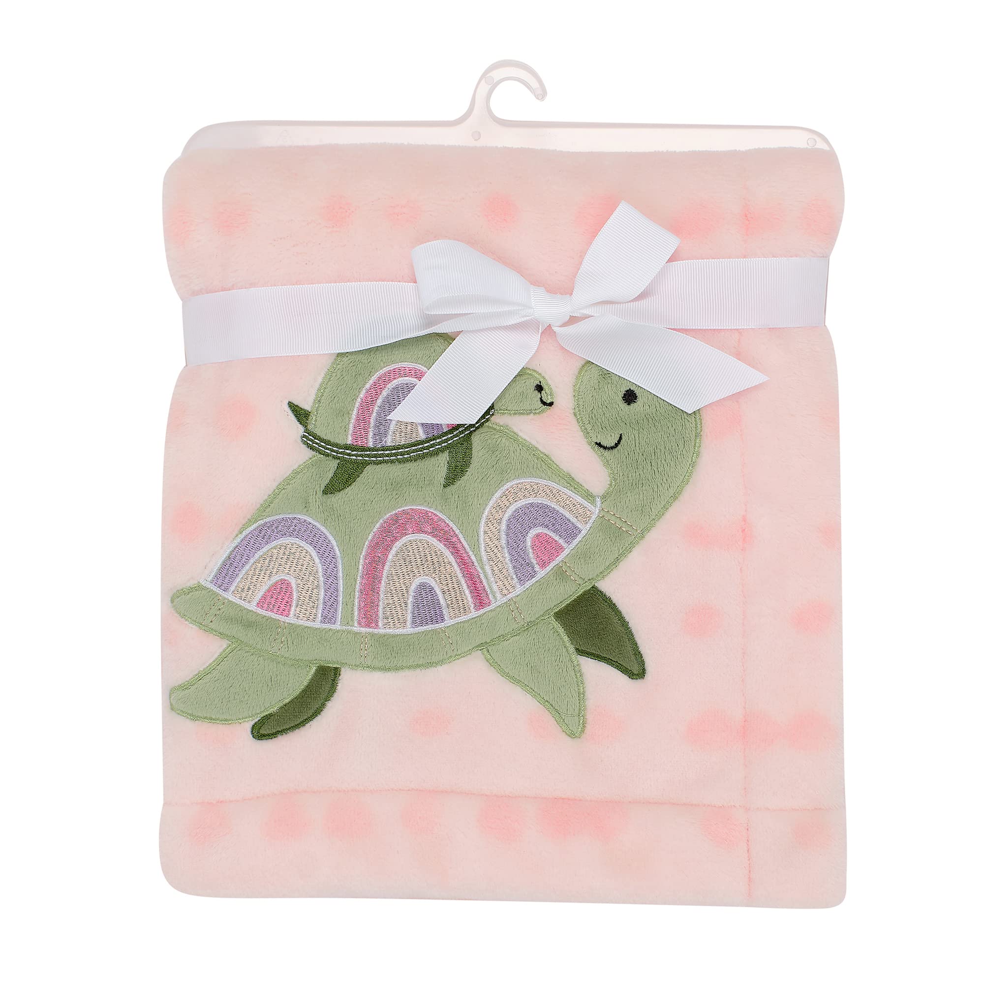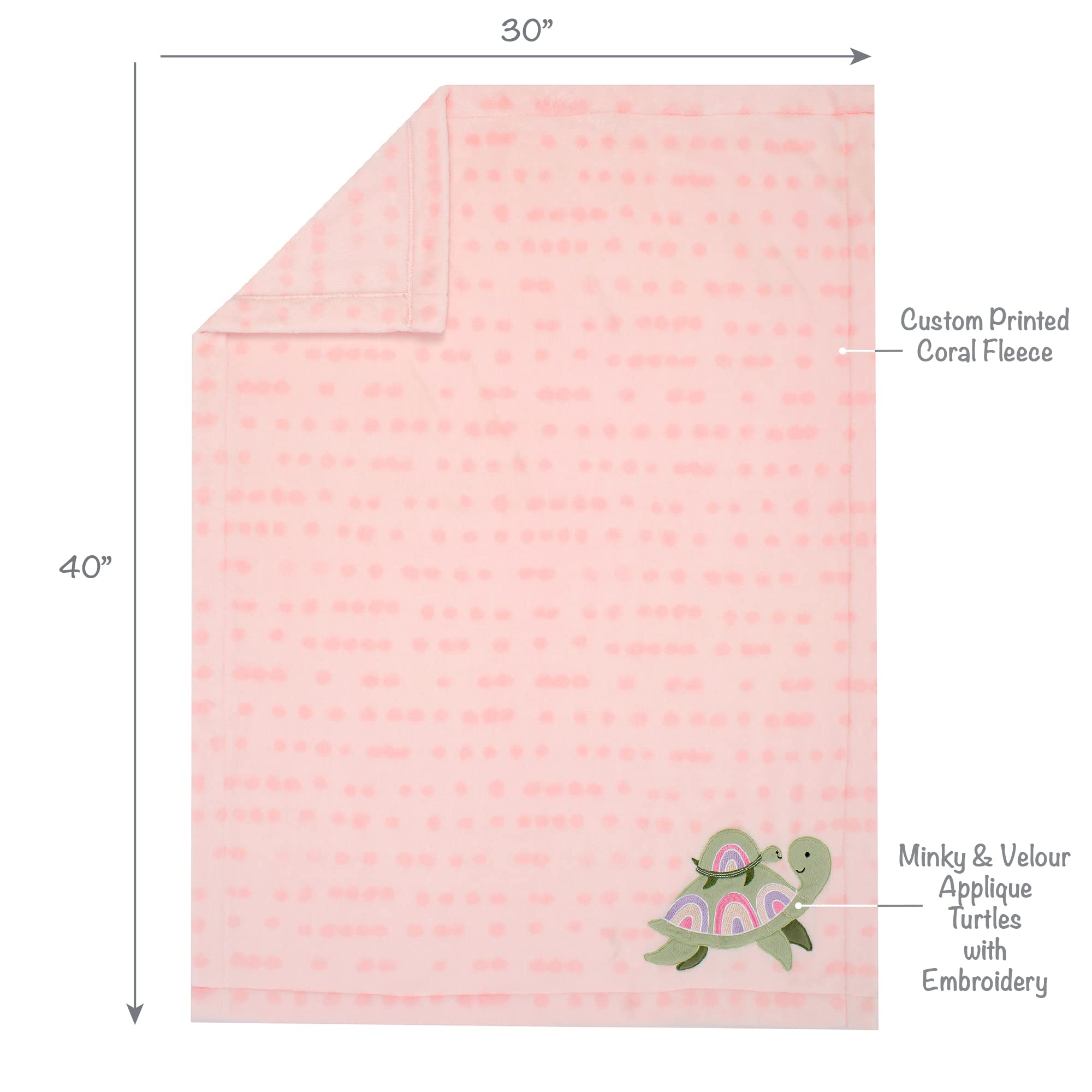 Features mommy and baby sea turtles appliqued in soft minky with rainbows on their shells