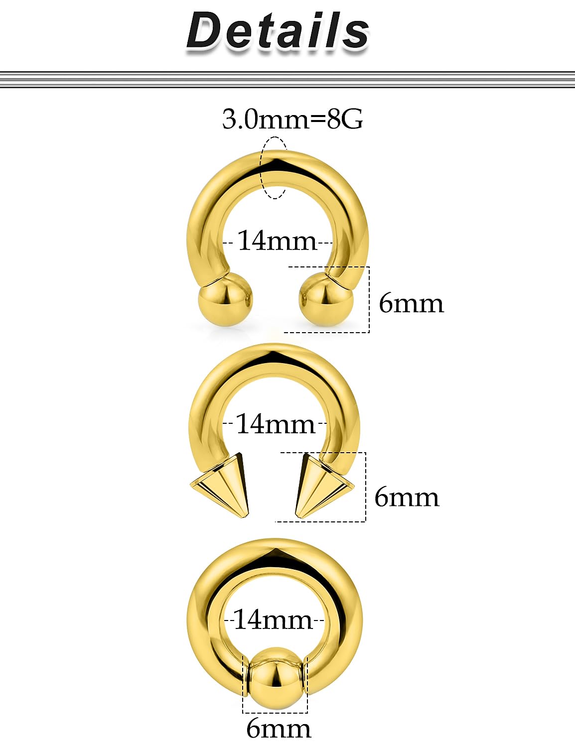 One Order Included 6 PCS Septum Rings Have 3 Styles, 1 Pairs Spike Horseshoes Septum Rings,1 Pairs Balls Horseshoes Septum Rings,1 Pairs Captive Bead Septum Rings,Economical Price with Trendy Design Give You a Colorful Day.