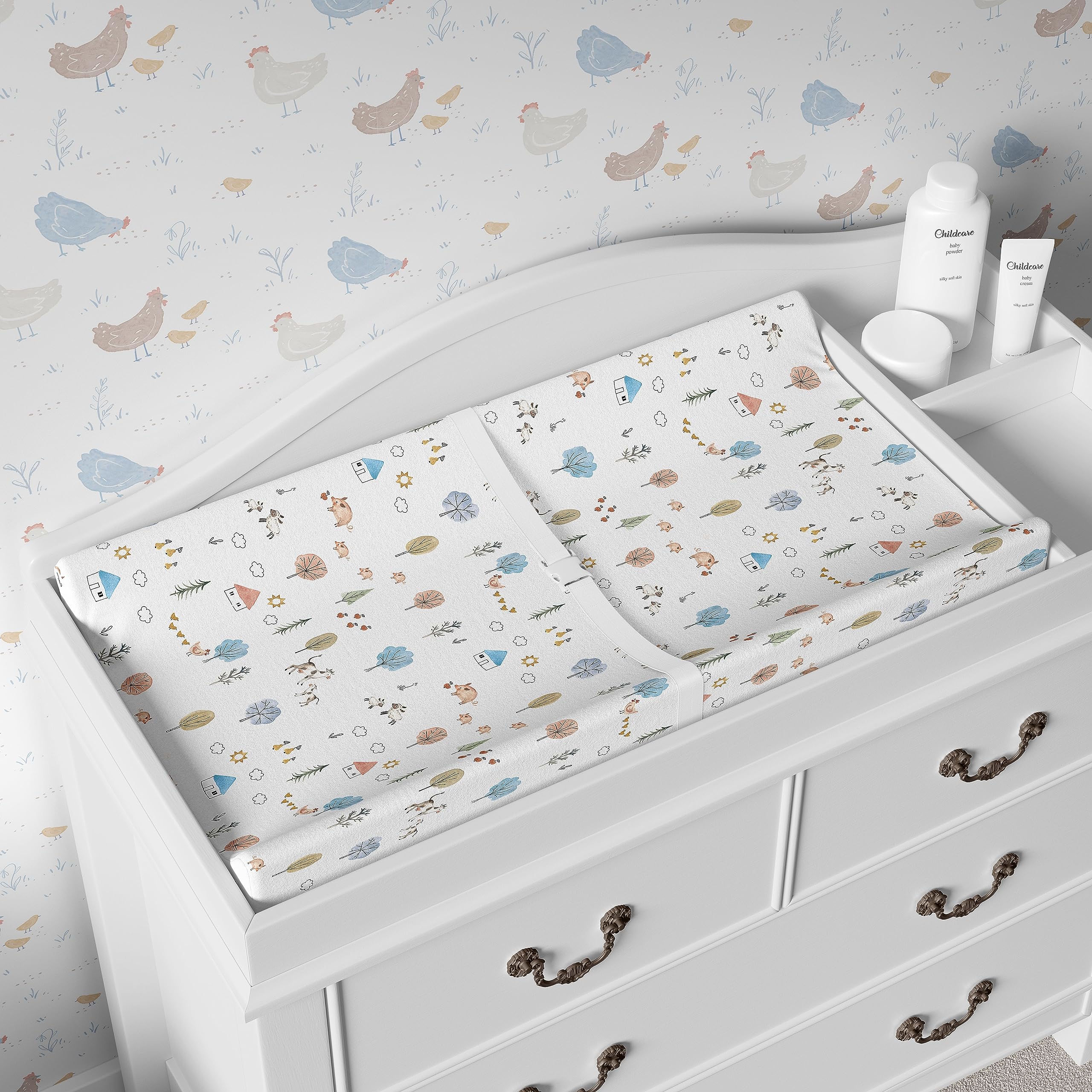 πŸ„ MADE TO LAST - Our changing table pad covers are made to last. For best long-term care, machine wash these covers on cold with similar colors on a gentle cycle. You can then tumble dry on low heat or line dry to best preserve the bright and colorful designs of this quick-drying material. Fill your world with beauty by mix and matching with Sorrel + Fern’s mattress or bassinet sheets.