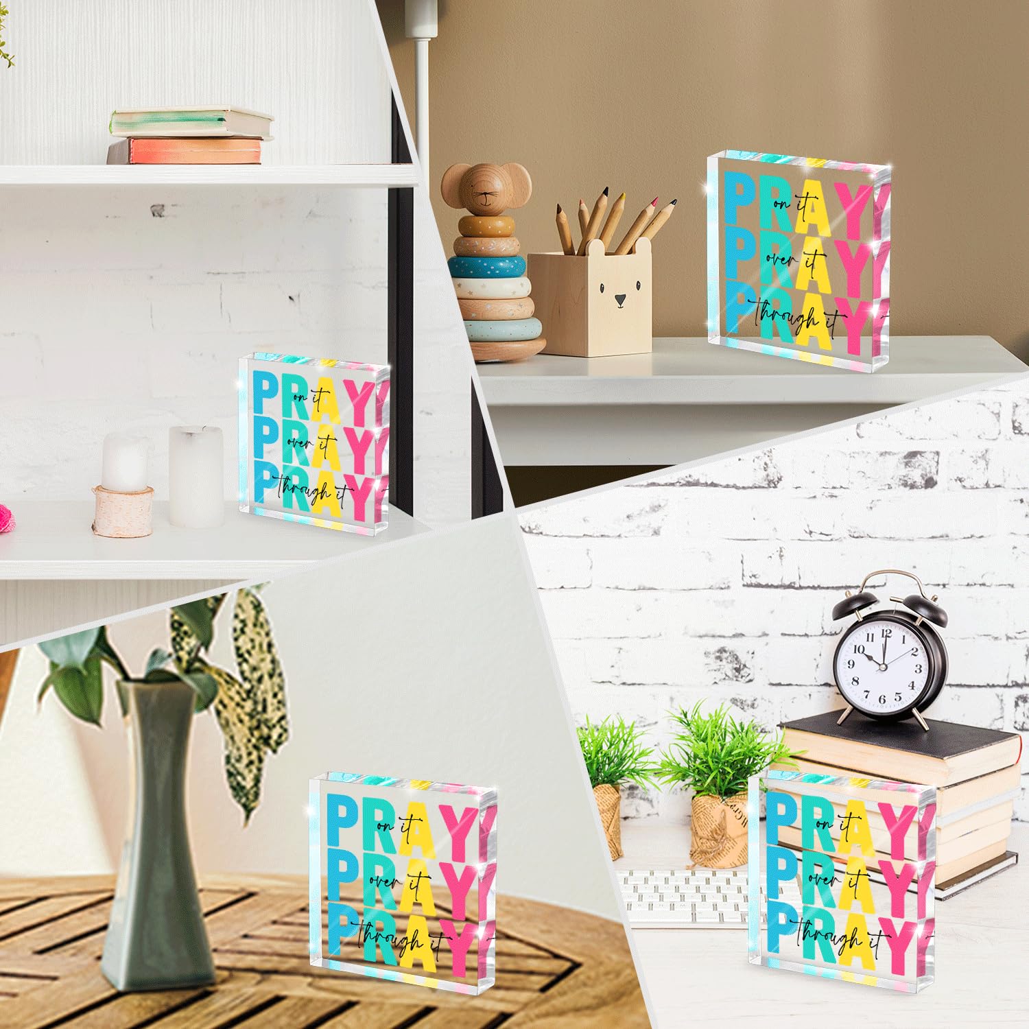 Design: Features the uplifting Christian phrase “Pray on It, Pray Over It, Pray Through It” as a core element, blending Bible verse inspiration with daily decor. It serves as a constant spiritual reminder during dorm study, office work, or bedroom rest, adding faith-based warmth to daily life.