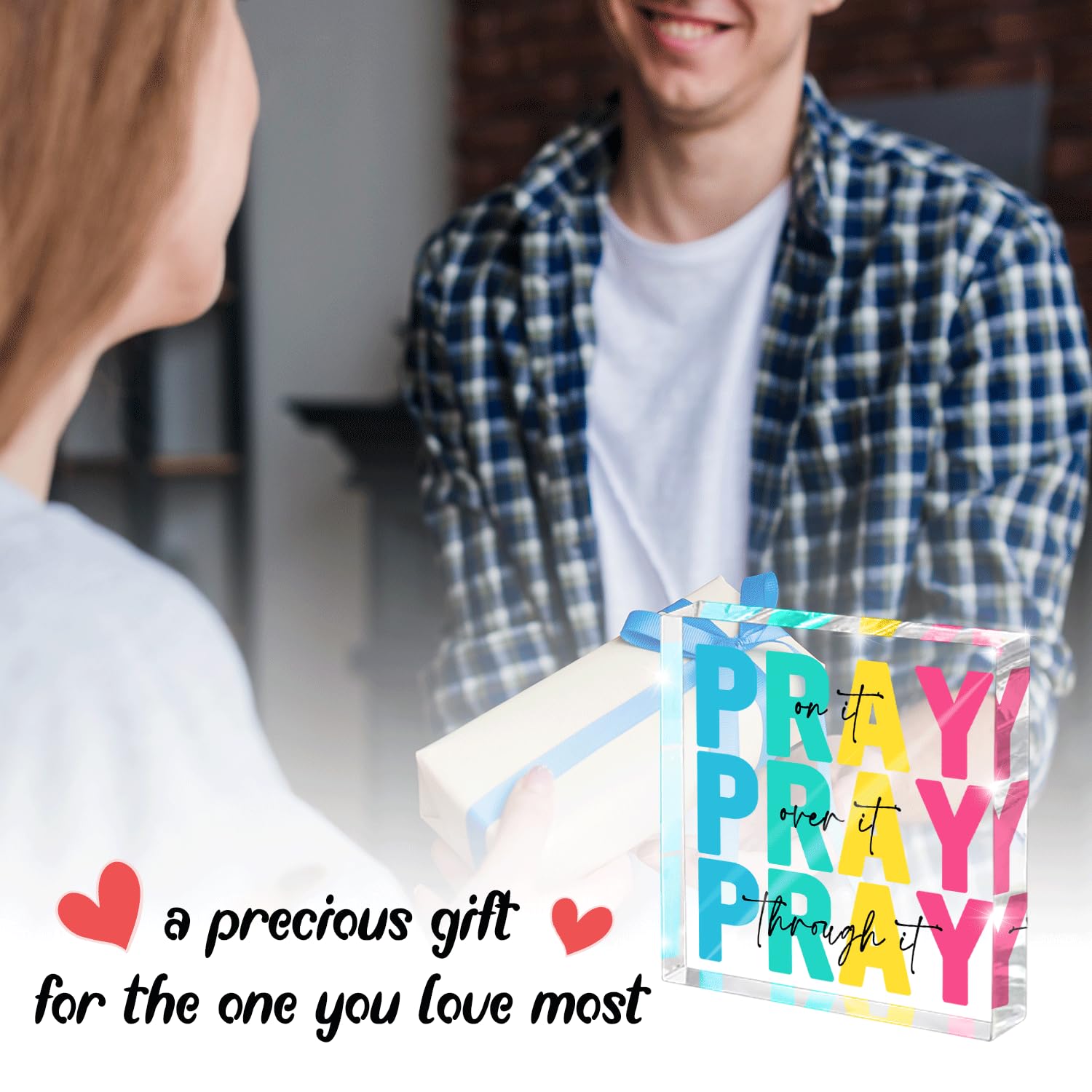Appropriate Size: The 4"x4" square acrylic ornament is of appropriate size. It’s perfectly sized to add elegance to your favorite small space, making it an ideal choice for your desk. Additionally, it comes with a gift box and a ribbon.