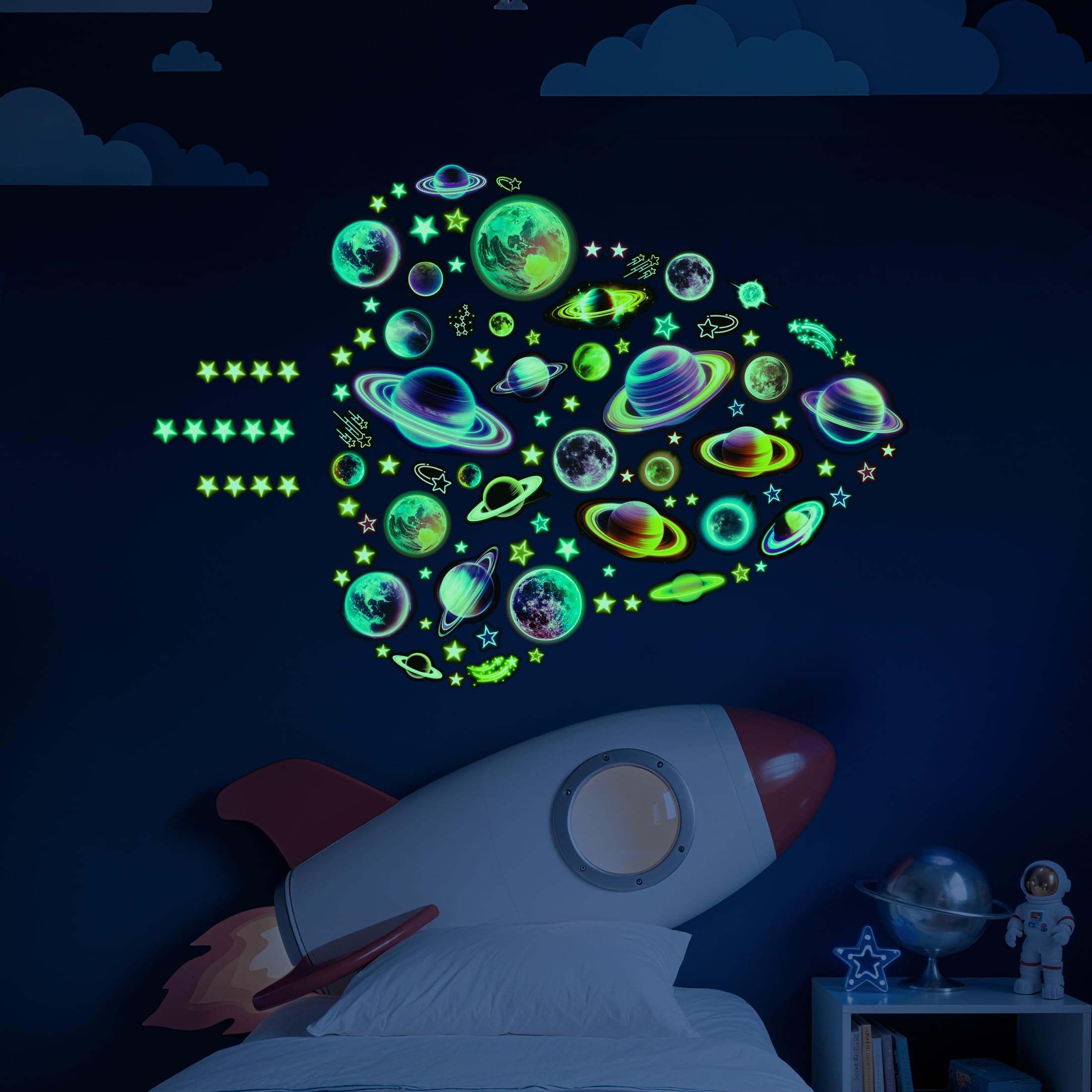 【PERFECT GIFT】These luminous ceiling stickers are exquisitely designed with vivid colors, making them the perfect Halloween, Christmas, Thanksgiving, New Year, Children's Day, New Year's Eve, or party gift for children, friends, stargazers, or space lovers!