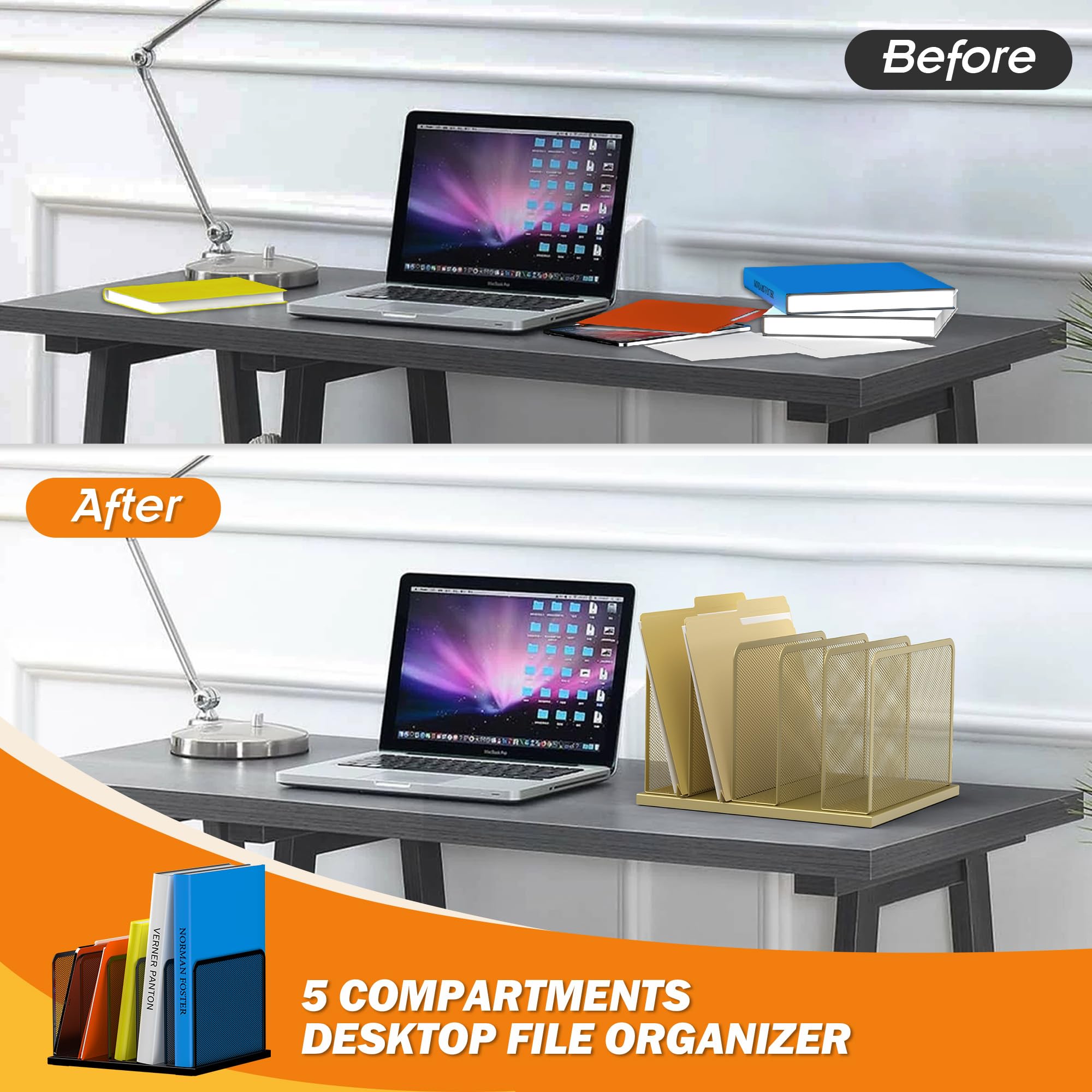 Kuntine.B Desk File Organizer Upright Mesh Desktop Organizer File Sorter Office Organization File Holder for Home, Office & Classroom (White, 2 Pack 7-Section)