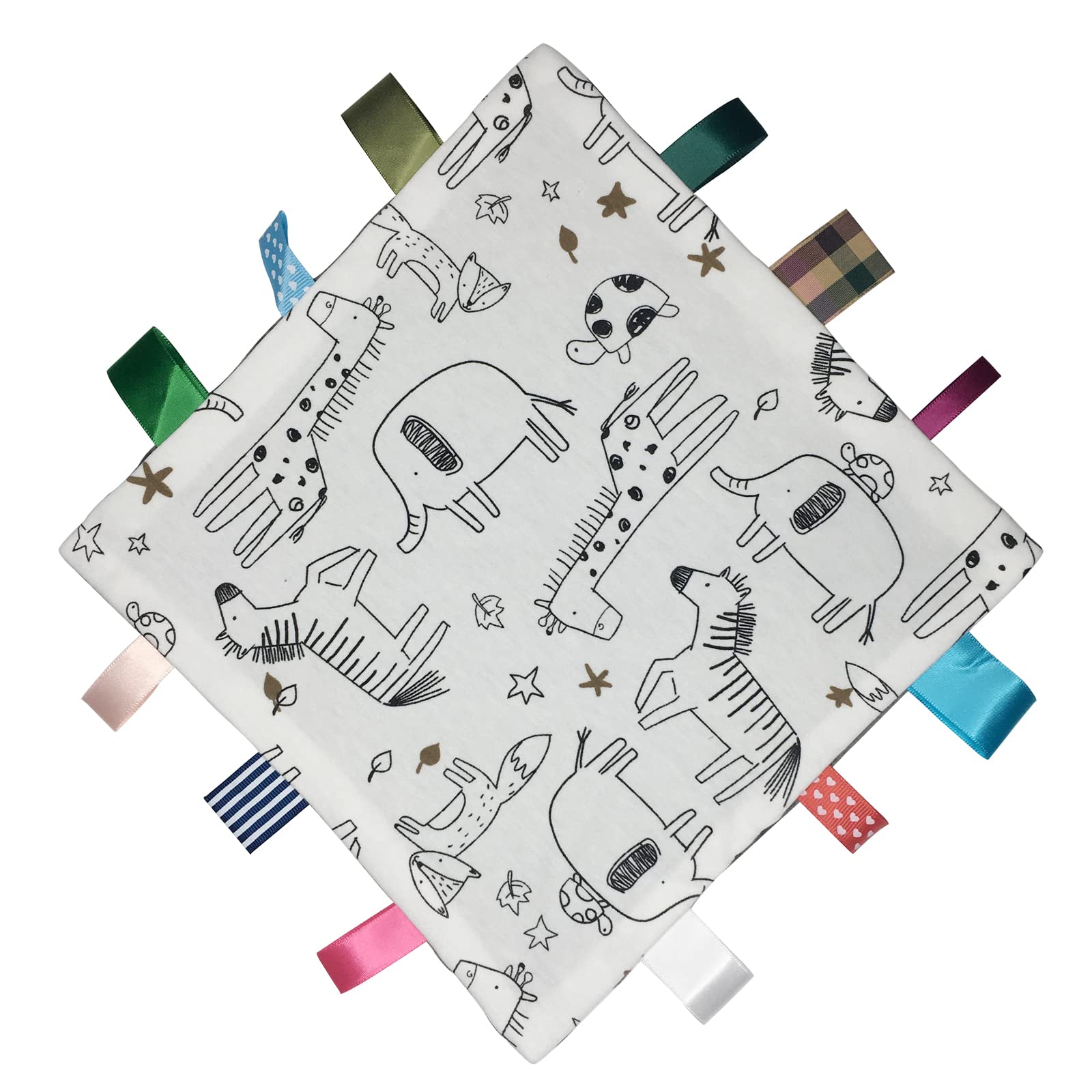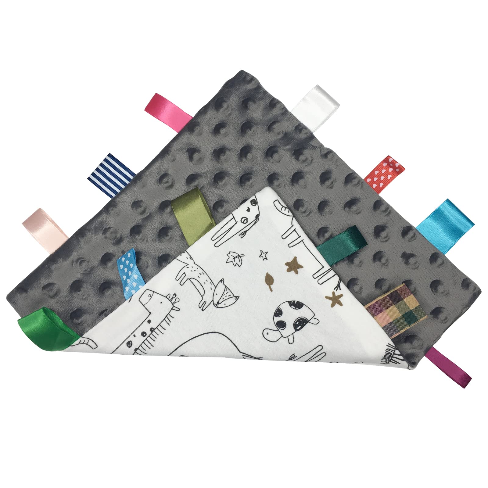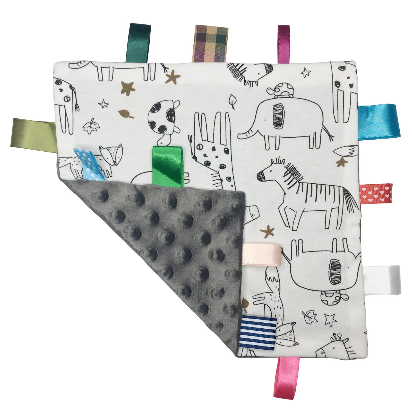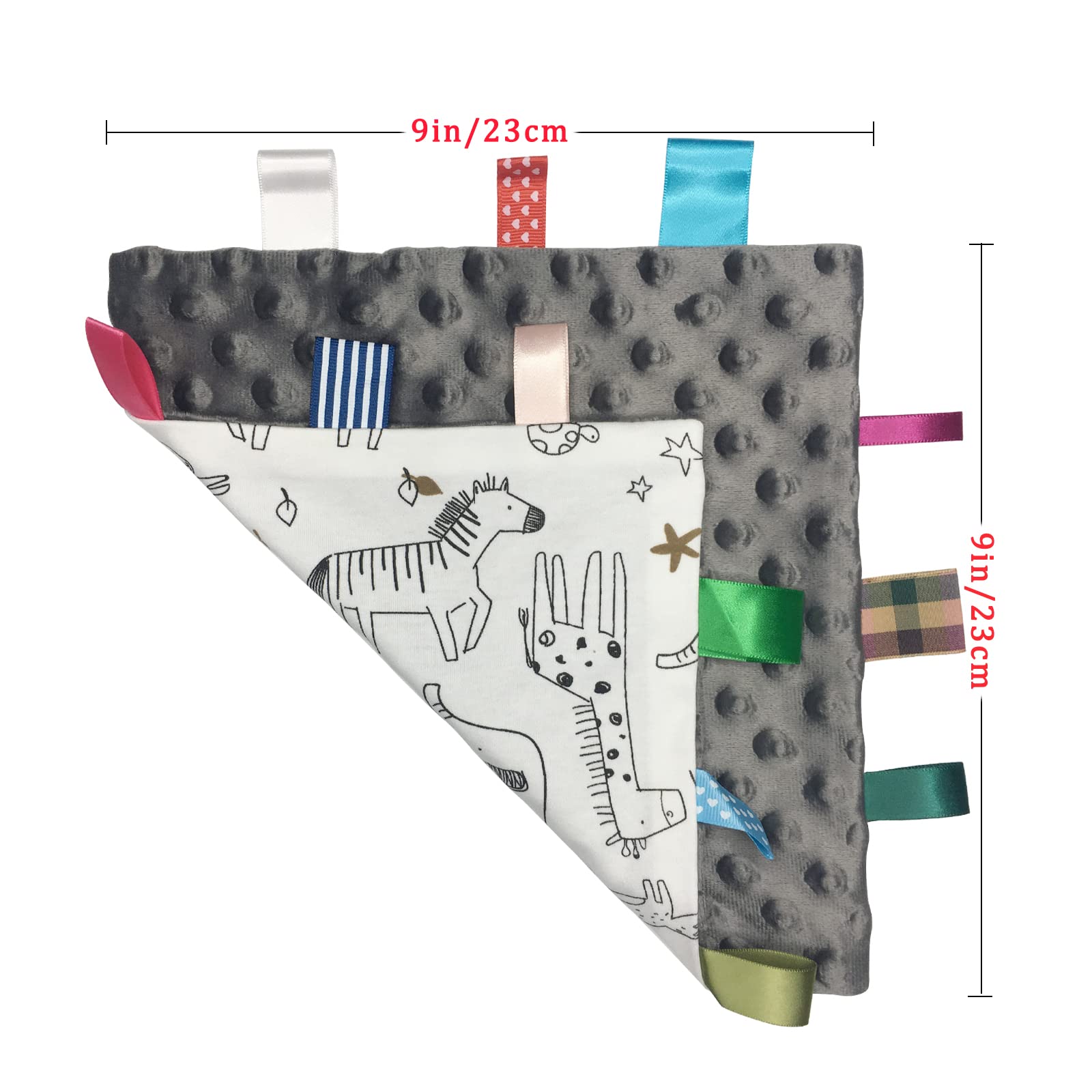 Small Tag Blanket for Newborn - About 9 x 9 inches (not including tags), perfect for a little lovey and for babies that love to play with tags!