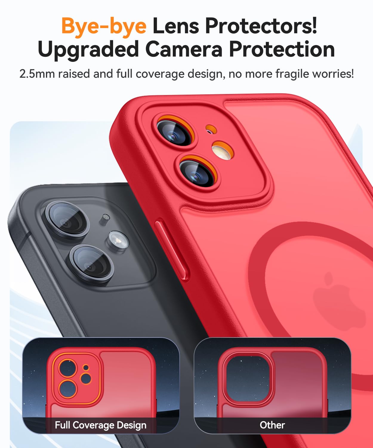 [Upgraded Full Coverage Camera Protection] Say goodbye to traditional lens protectors! Compared to other regular phone cases, our iPhone 12 Mini case features an upgraded full coverage protection for the camera, with a 2.5mm raised border around the lens. It provides comprehensive protection for the lens without affecting photography.