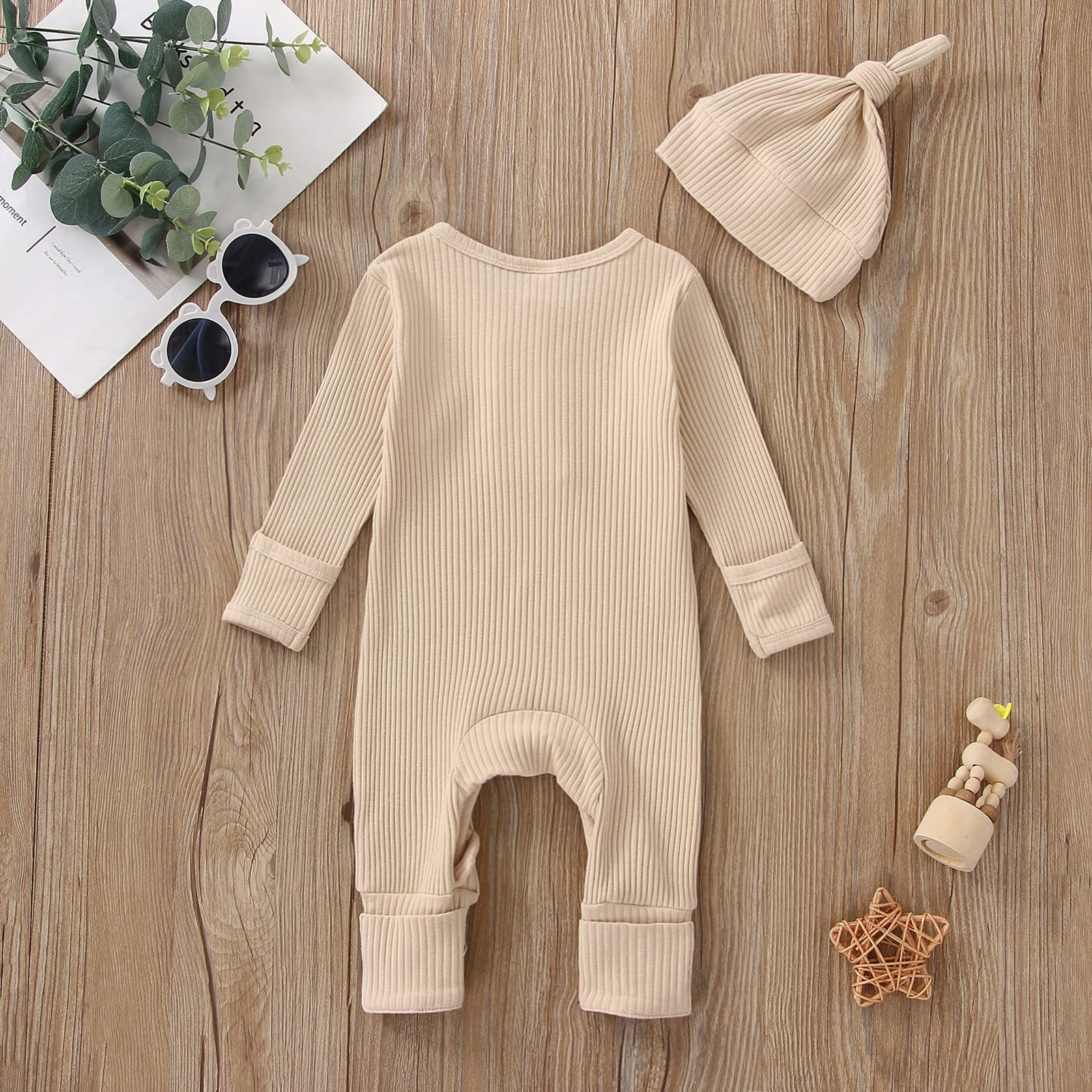 FEATURE: 2Pcs clothes set, a hat, long sleeve, zipper, buttons, ribbed knit, solid color, round neck, fall and spring outfits.